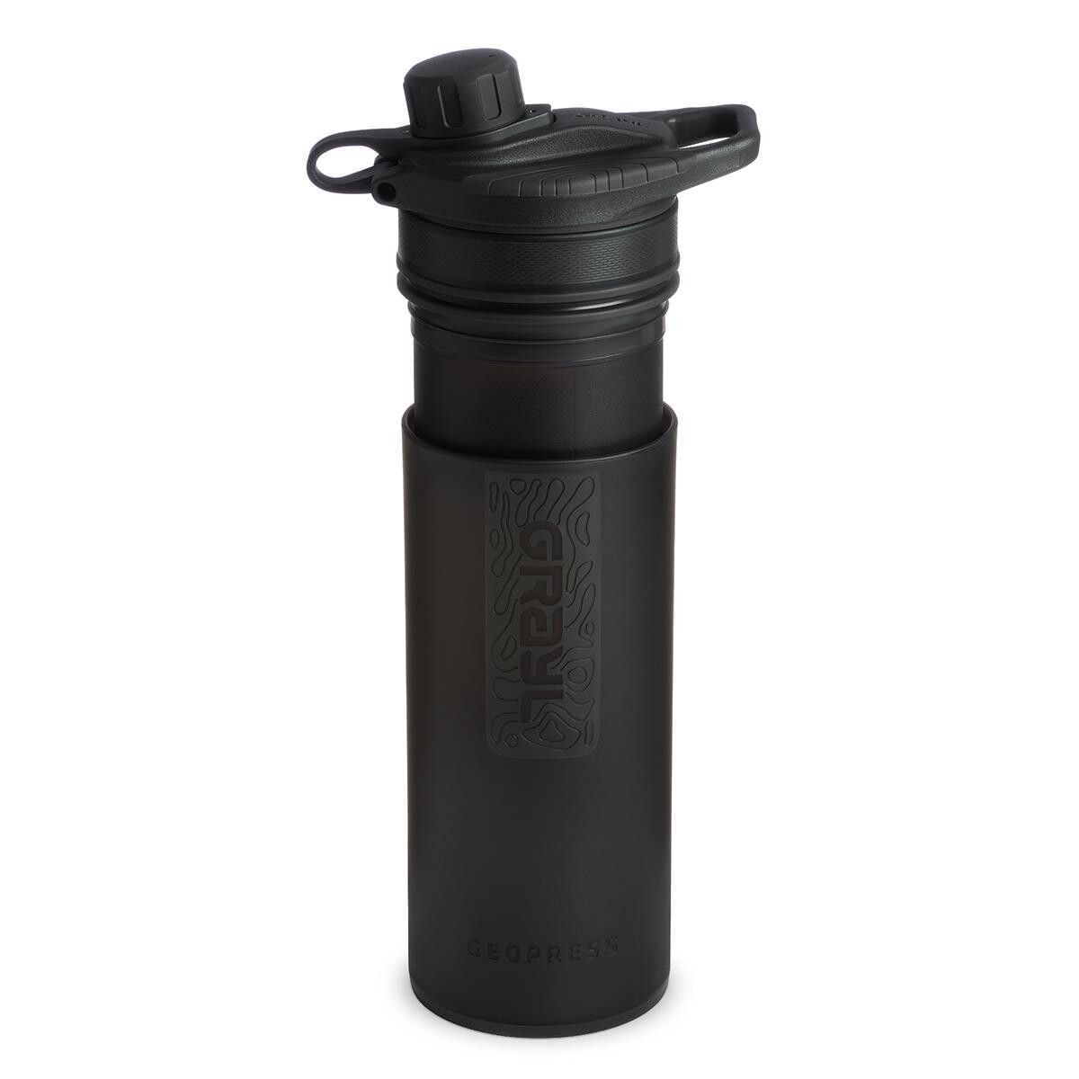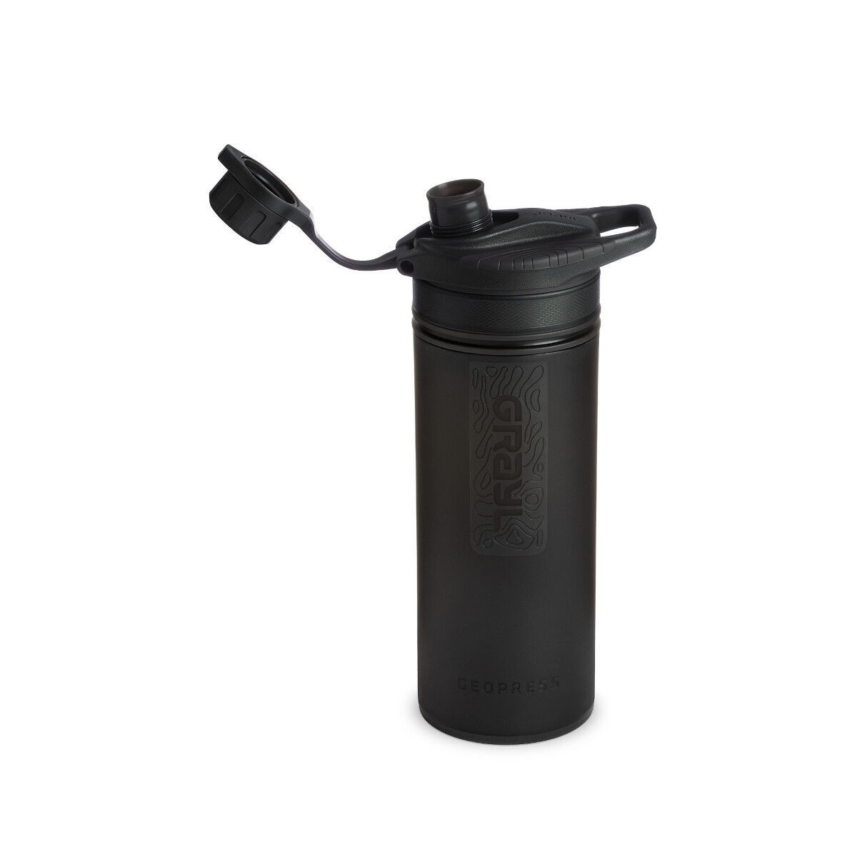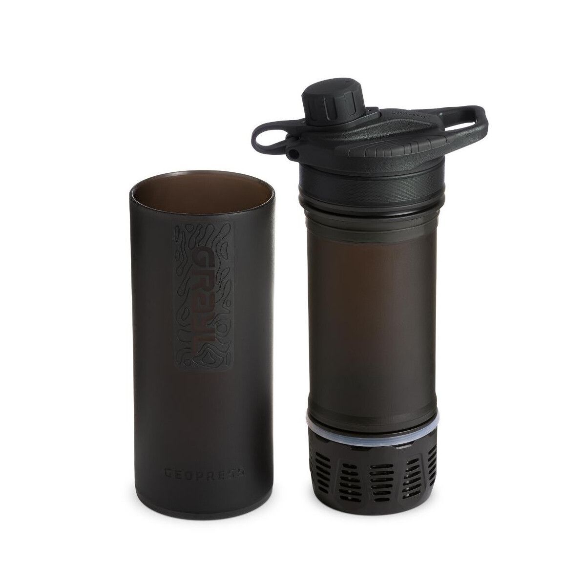 • Setze die Patrone keinem Wasser aus, das heißer als 50 °C ist. Es schadet den Reinigungsmedien. Stelle den Filter nicht in die Mikrowelle. Geopress und Ultrapress (nicht Kartusche) von Hand waschen. Der äußere Becher, die innere Presse und der Trinkverschluss können alle von Hand mit warmem Seifenwasser gewaschen werden. Gib keine Komponenten in die Spülmaschine. Wasche die Patrone nicht mit Seife oder Reinigungsmitteln. Trockne die feuchte Kartusche gründlich ab und schütte überschüssiges Wasser ab. Lass die Patrone an der Luft trocknen.