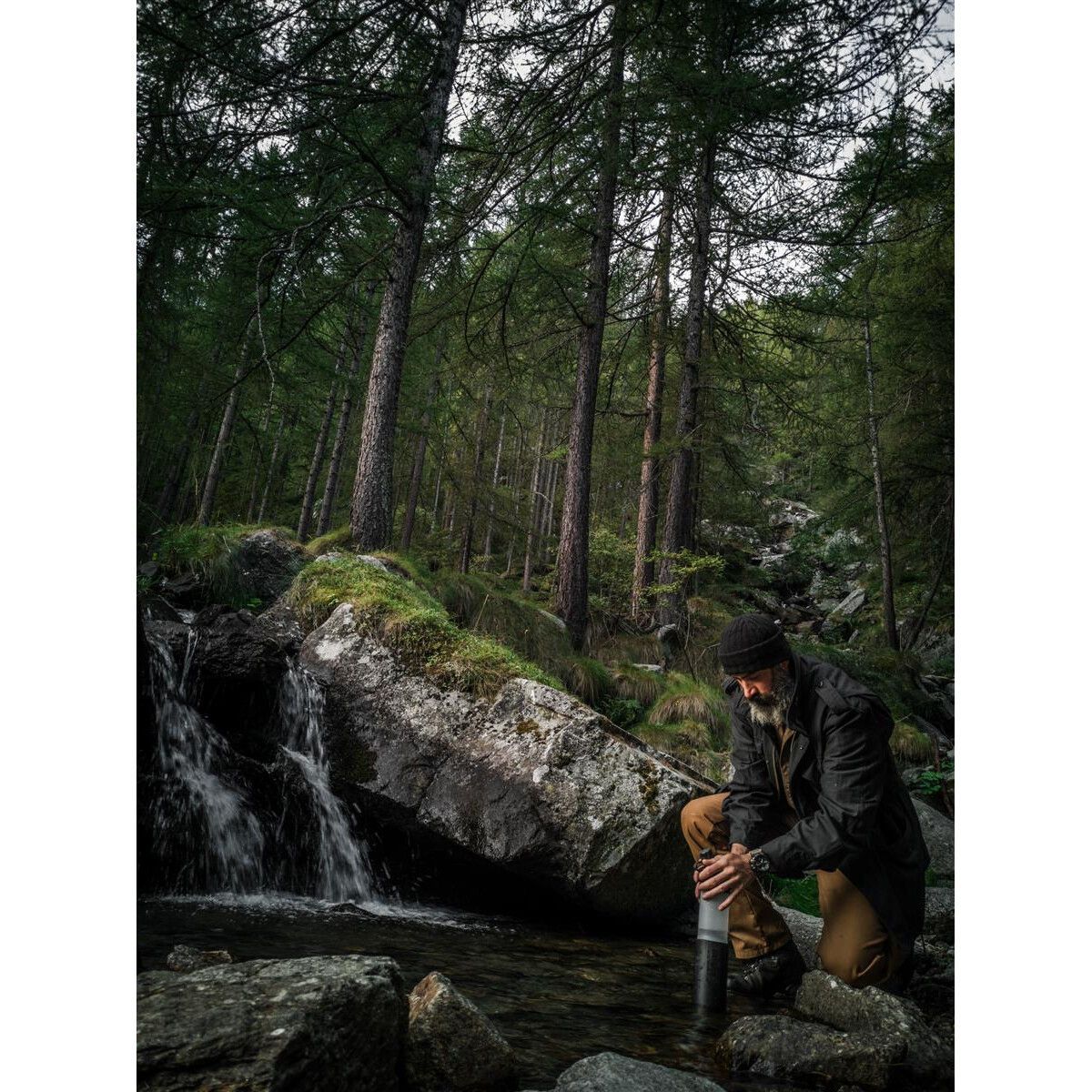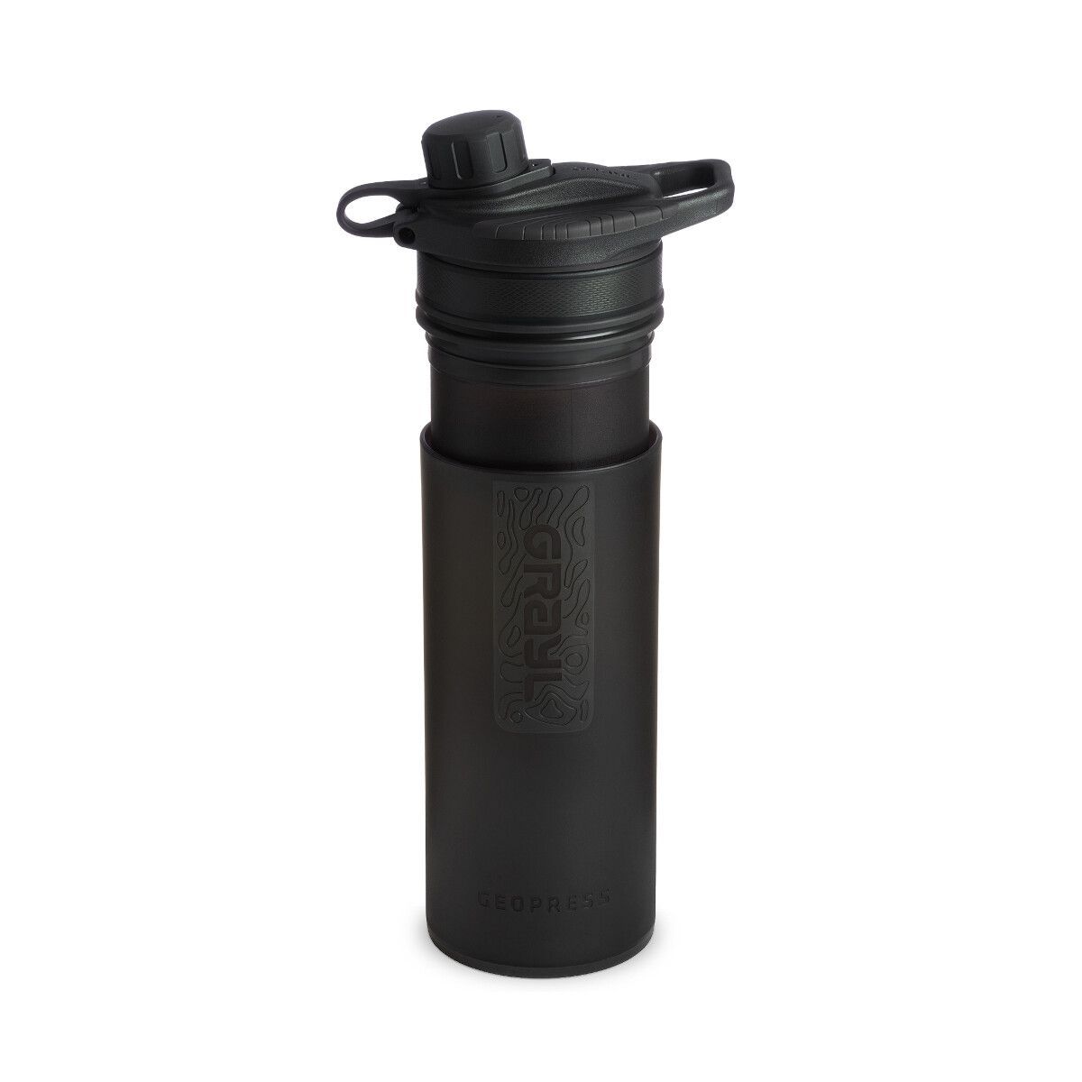 • Nur mit Süßwasser (keine andere Flüssigkeit) pressen. Kein Salz- oder Brackwasser. Setze die Innenpresse nicht unbehandeltem Wasser aus bzw. fülle sie nicht mit unbehandeltem Wasser, da es zu Kreuzkontaminationen kommen kann. Tannine sind natürliche organische Verbindungen, die aus verrottenden Vegetationen und Bäumen austreten und zur Verstopfung von Patronen führen können. Verwende keinen Grayl in Wasser mit hohem Tassin-Gehalt. Patronen werden nach einem Einfrier-/Auftauzyklus nicht wesentlich beeinträchtigt. Verwende die Kartusche nach 3 oder mehr Einfrier-/Auftauzyklen nicht mehr.