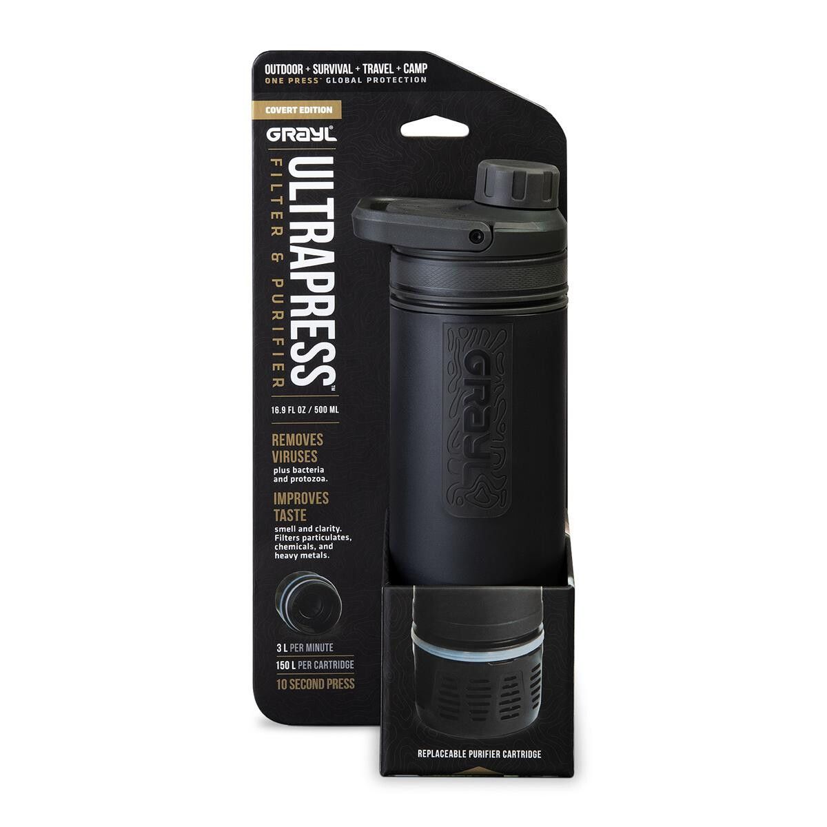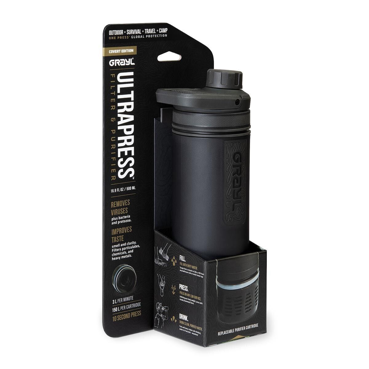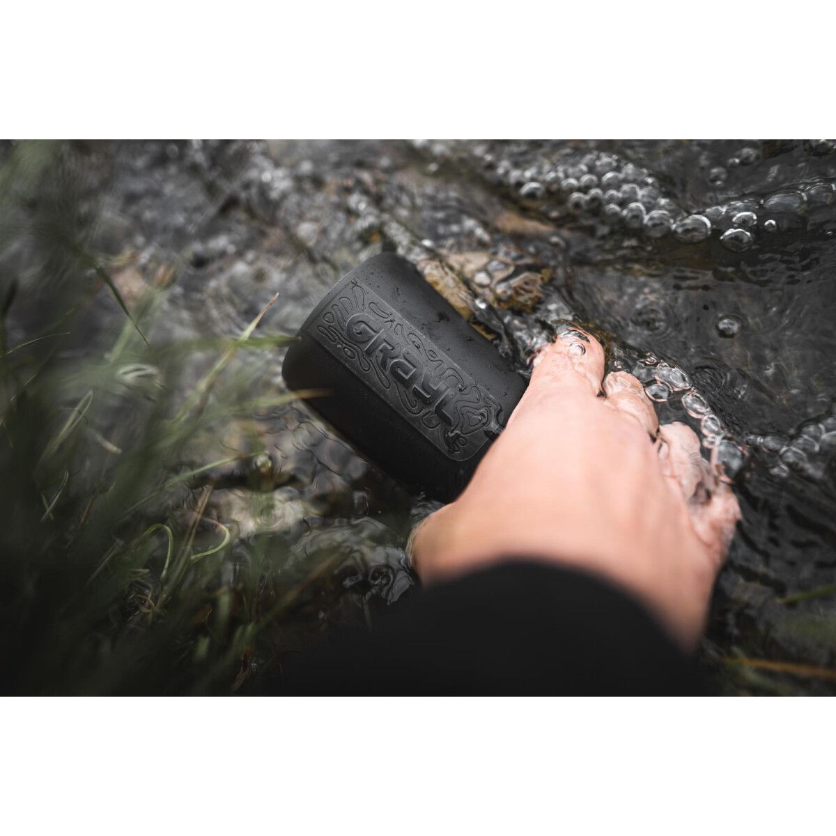 • Nur mit Süßwasser (keine andere Flüssigkeit) pressen. Kein Salz- oder Brackwasser. Setze die Innenpresse nicht unbehandeltem Wasser aus bzw. fülle sie nicht mit unbehandeltem Wasser, da es zu Kreuzkontaminationen kommen kann. Tannine sind natürliche organische Verbindungen, die aus verrottenden Vegetationen und Bäumen austreten und zur Verstopfung von Patronen führen können. Verwende keinen Grayl in Wasser mit hohem Tassin-Gehalt. Patronen werden nach einem Einfrier-/Auftauzyklus nicht wesentlich beeinträchtigt. Verwende die Kartusche nach 3 oder mehr Einfrier-/Auftauzyklen nicht mehr.