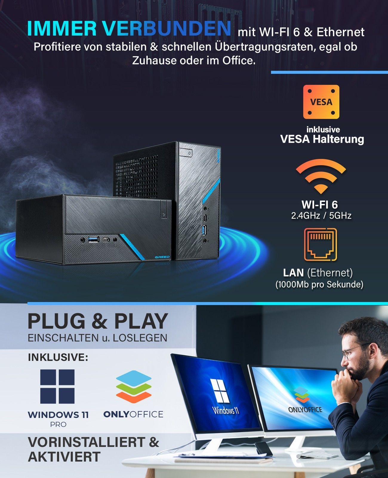Greed® Nano - Entry Mini PC mit Intel Celeron G5905 - Silent 4K Multimedia Computer