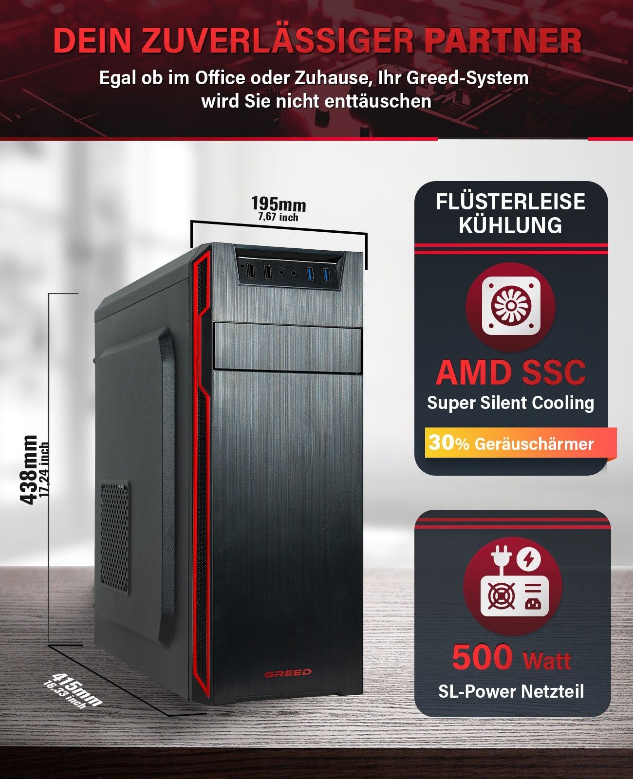 Greed® Silent GT - Office PC mit AMD Ryzen 5 5600GT - Schneller Rechner + Computer