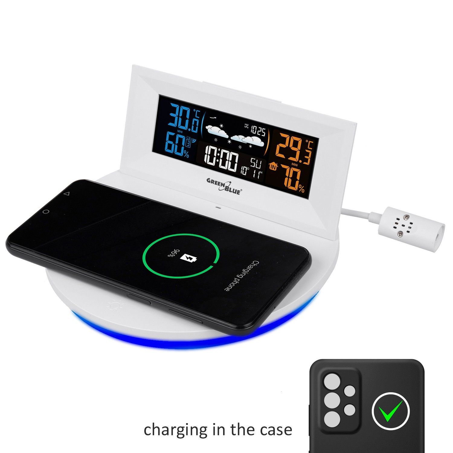 GreenBlue GB213 Kabellose Wetterstation mit kabellosem Qi-Ladegerät