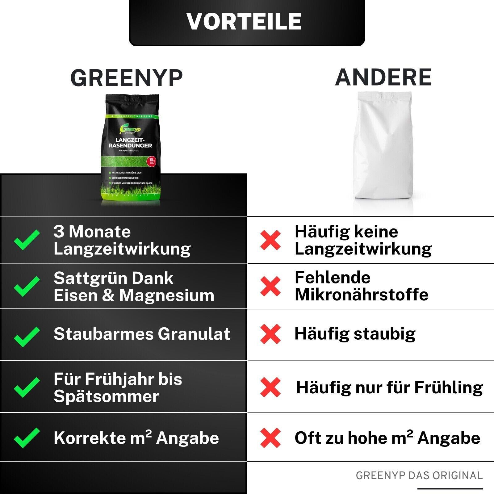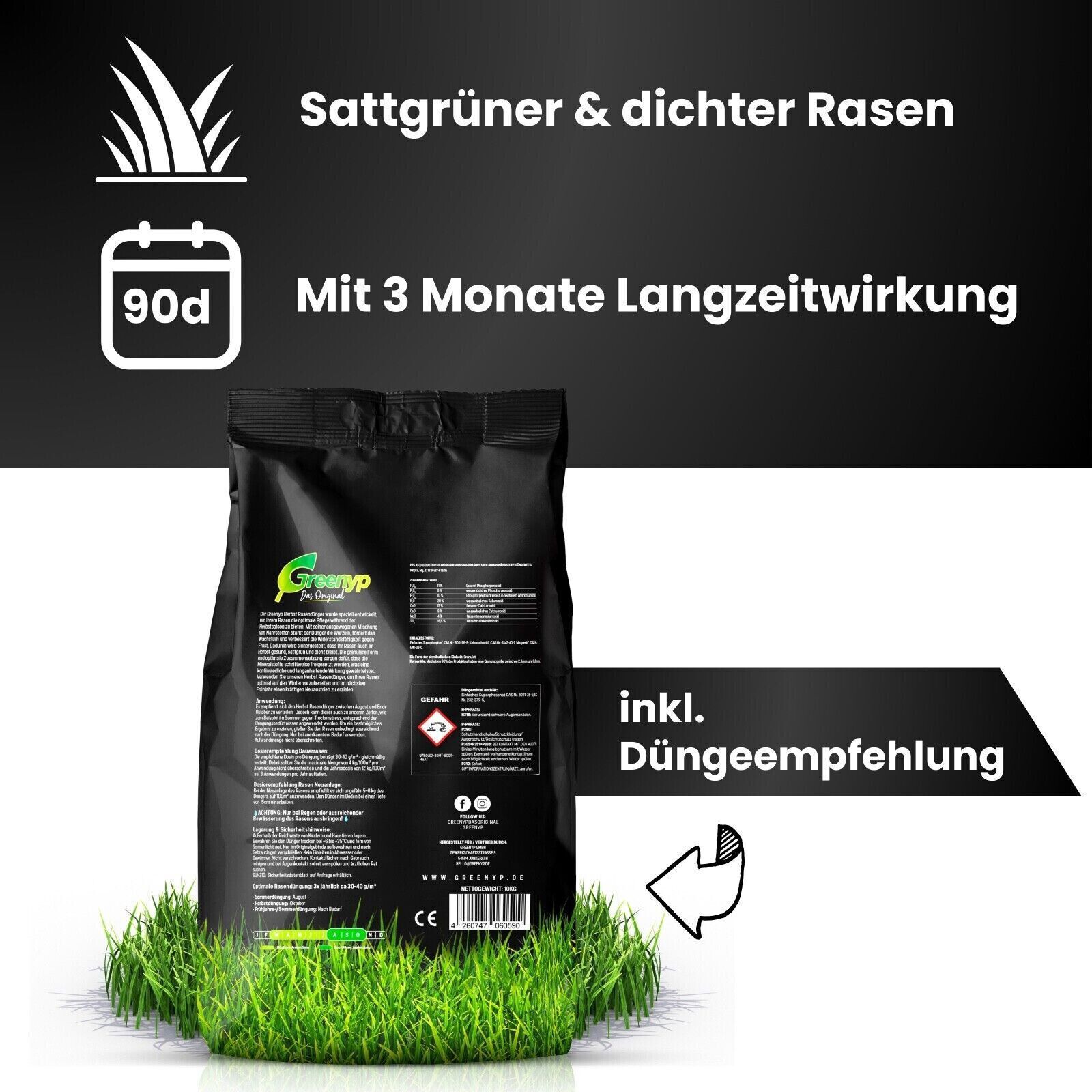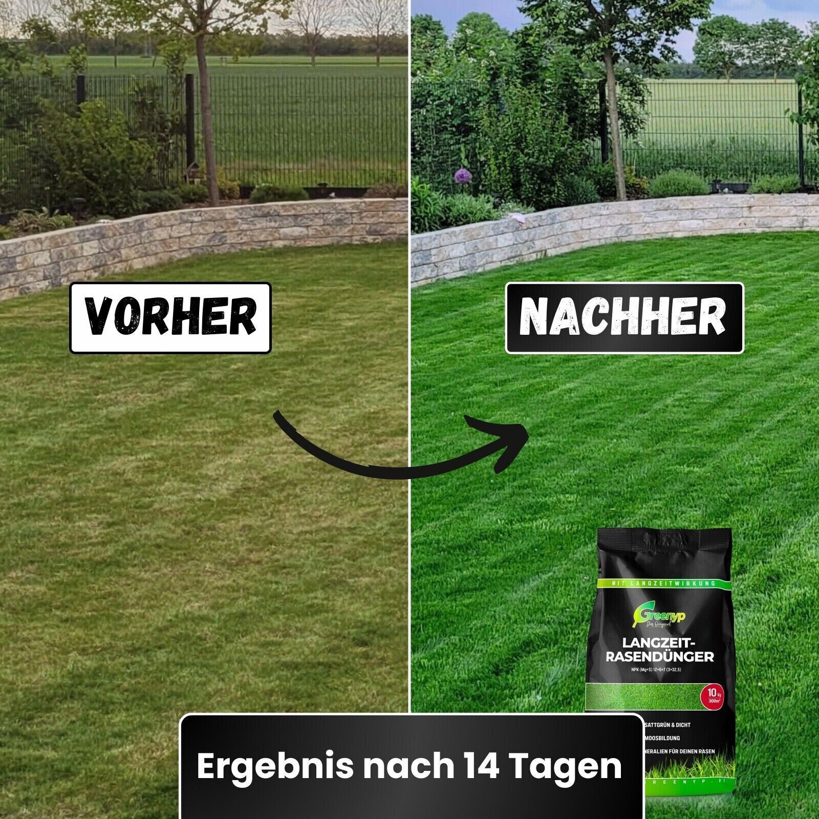 Greenyp Rasendünger mit Langzeitwirkung Frühjahrsdünger Sommerdünger ohne Moos