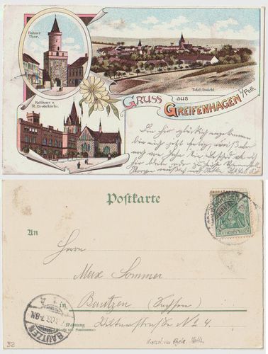 Greifenhagen 1903 Litho 3 Bilder AK mit Marke gelaufen. Gute Karte Privatauktion . Höhere Gebote werden akzeptiert und können die Auktion sofort beenden.