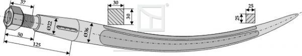 Greiferzinken gebogen 600mm M20x1.5mm Profil Vierkant 30/30