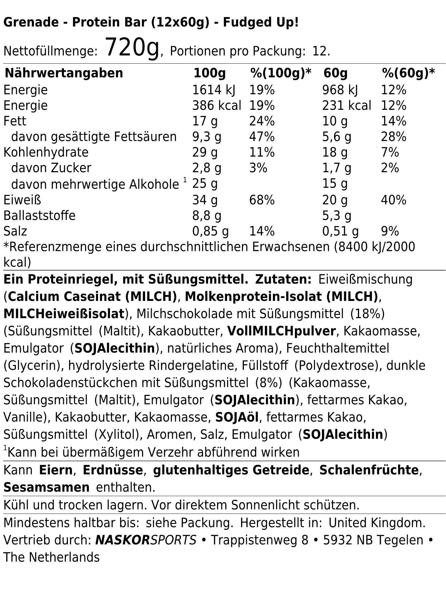 Grenade Grenade Protein Bar (12x60g) Fudged Up!