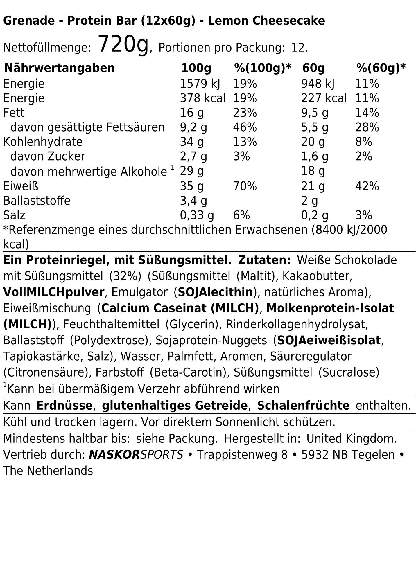 Grenade Grenade Protein Bar (12x60g) Lemon Cheesecake