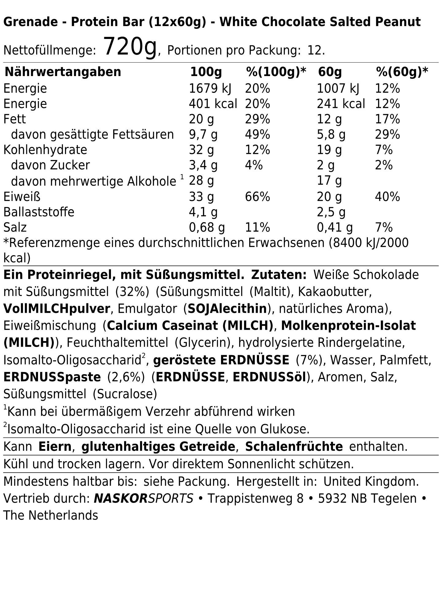 Grenade Grenade Protein Bar (12x60g) White Chocolate Salted Peanut