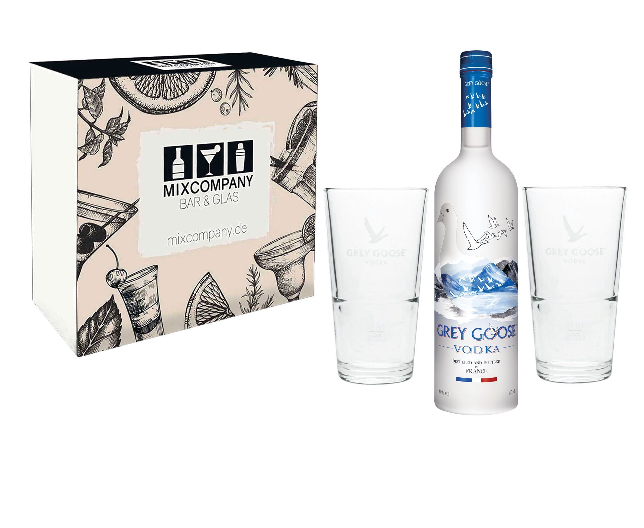 Grey Goose Grey Goose Geschenkset - Grey Goose Vodka 0,7l 700ml (40% Vol) + 2x Longdrink G