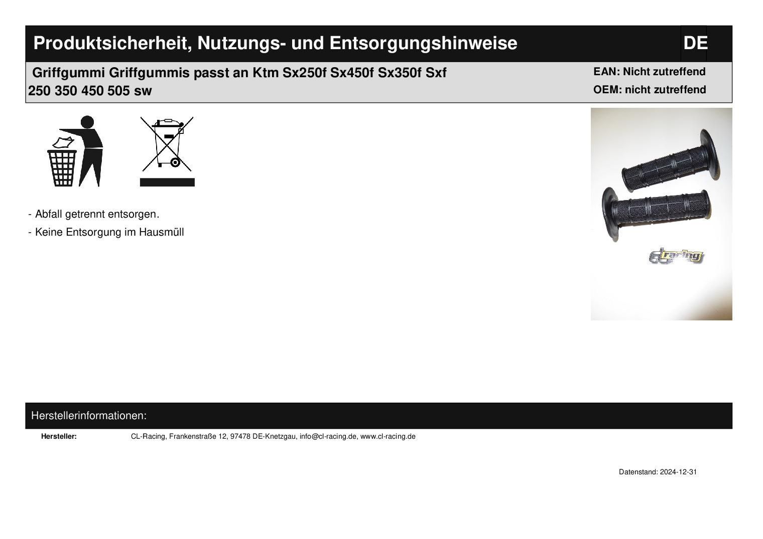 Griffgummis Lenkergriffe rubber grip passt an Ktm Sx250f Sx450f Sx350f Sxf sw In dieser Auktion gibt es folgenden Artikel zu kaufen: Griffgummis (siehe Foto) Artikelbeschreibung: passend für alle gängigen Enduro- MX-Lenker und Gasgriffhülsen Die weiche Gummimischung bietet sehr guten Fahrkomfort, is