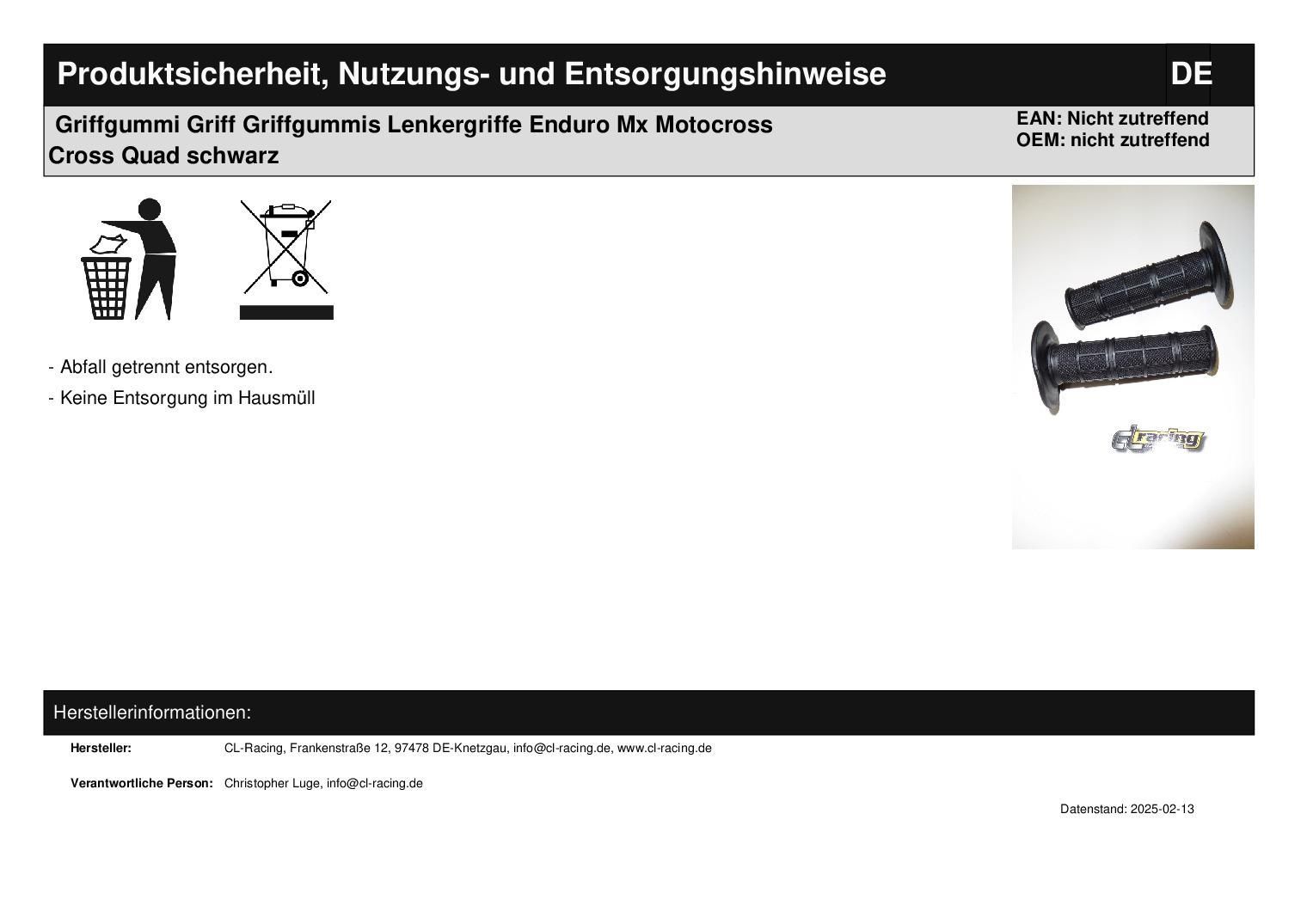 Griffgummis Lenkergriffe rubber grip Enduro Mx Motocross Cross Quad sw In dieser Auktion gibt es folgenden Artikel zu kaufen: Griffgummis (ähnlich Foto) Artikelbeschreibung: passend für alle gängigen Enduro- MX-Lenker und Gasgriffhülsen Die weiche Gummimischung bietet sehr guten Fahrkomfort, ist gri