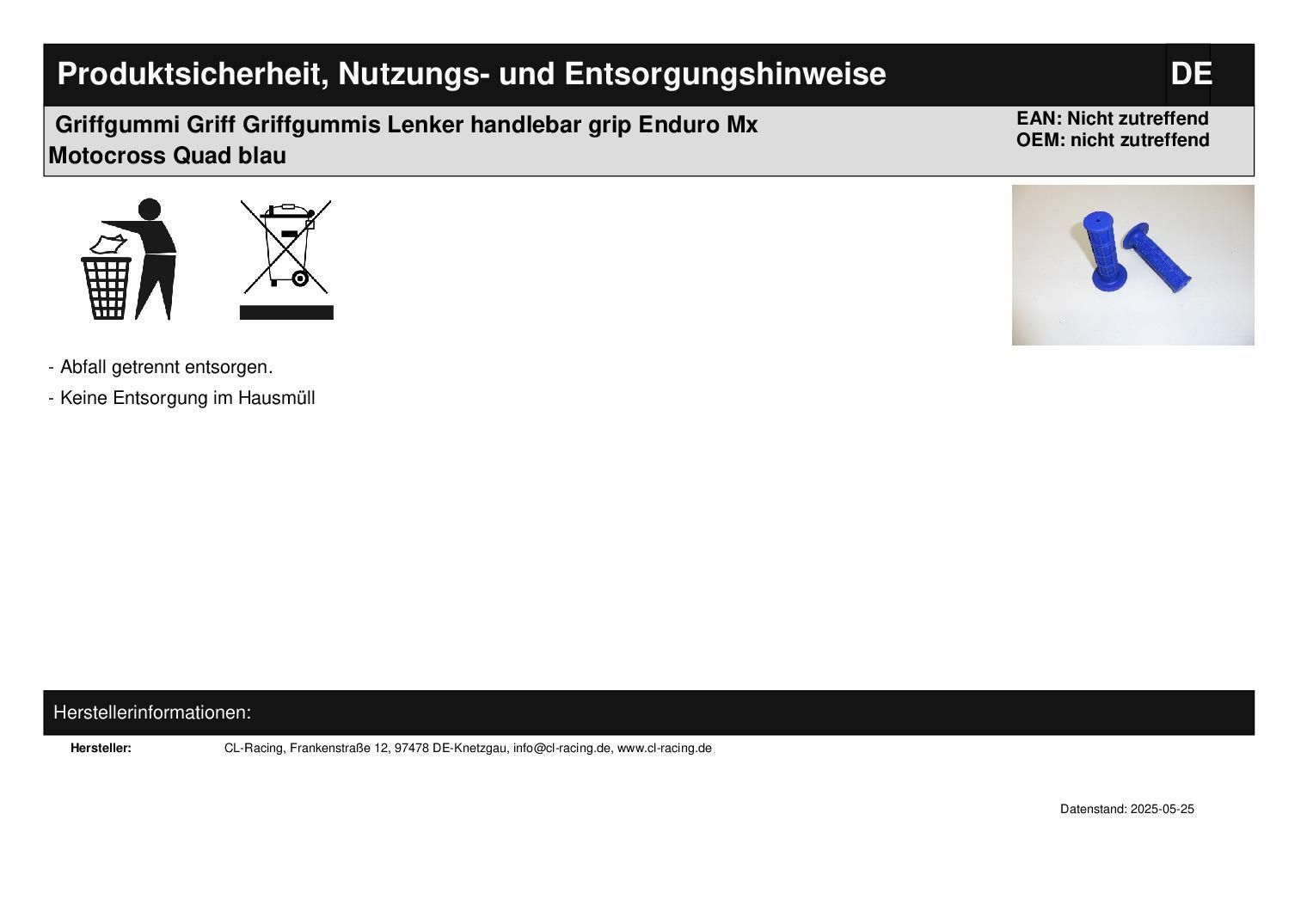 Griffgummis Lenkergriffe rubber grip passt an Yamaha Yzf Mx Motocross Quad blau In dieser Auktion gibt es folgenden Artikel zu kaufen: Griffgummis (ähnlich Foto) Artikelbeschreibung: passend für alle gängigen Enduro- MX-Lenker und Gasgriffhülsen weiche Gummimischung; diese bietet sehr guten Fahrkomf