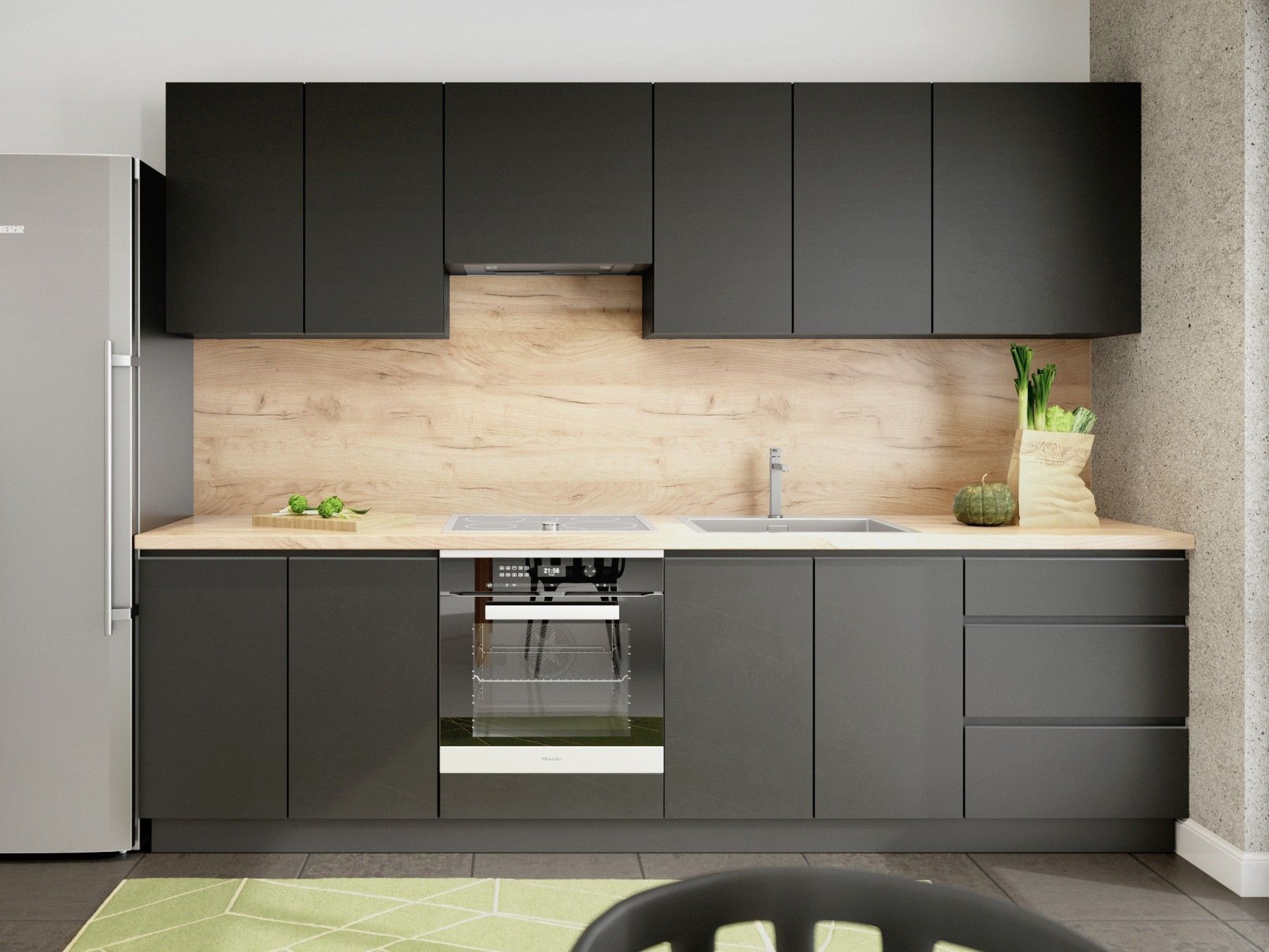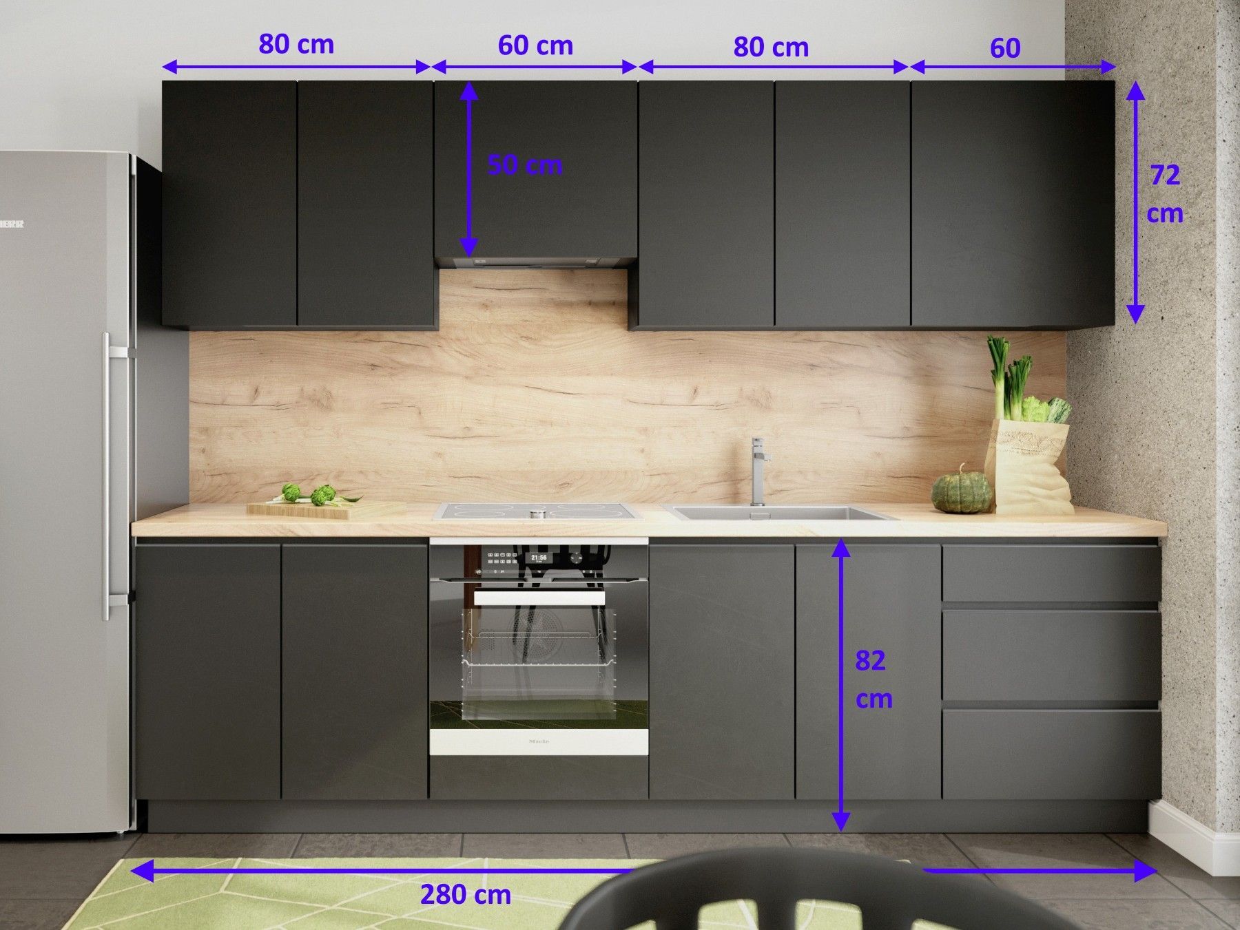Grifflose Einbauküche Campari 280 cm, 8-tlg Schwarz, Weiß, Grau - Hochglanz oder Matt