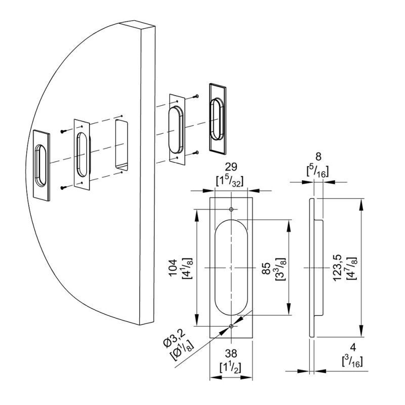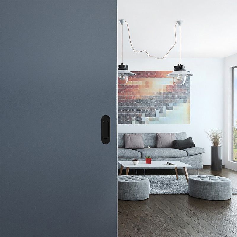 Griffmulden Set für Schiebetüren, oval, Farbe schwarz, für Durchgangstüren, Zimmertür