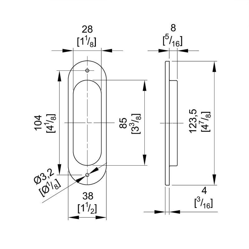 Griffmulden Set für Schiebetüren, oval, Nickel gebürstet, für Durchgangstüren, Zimmer