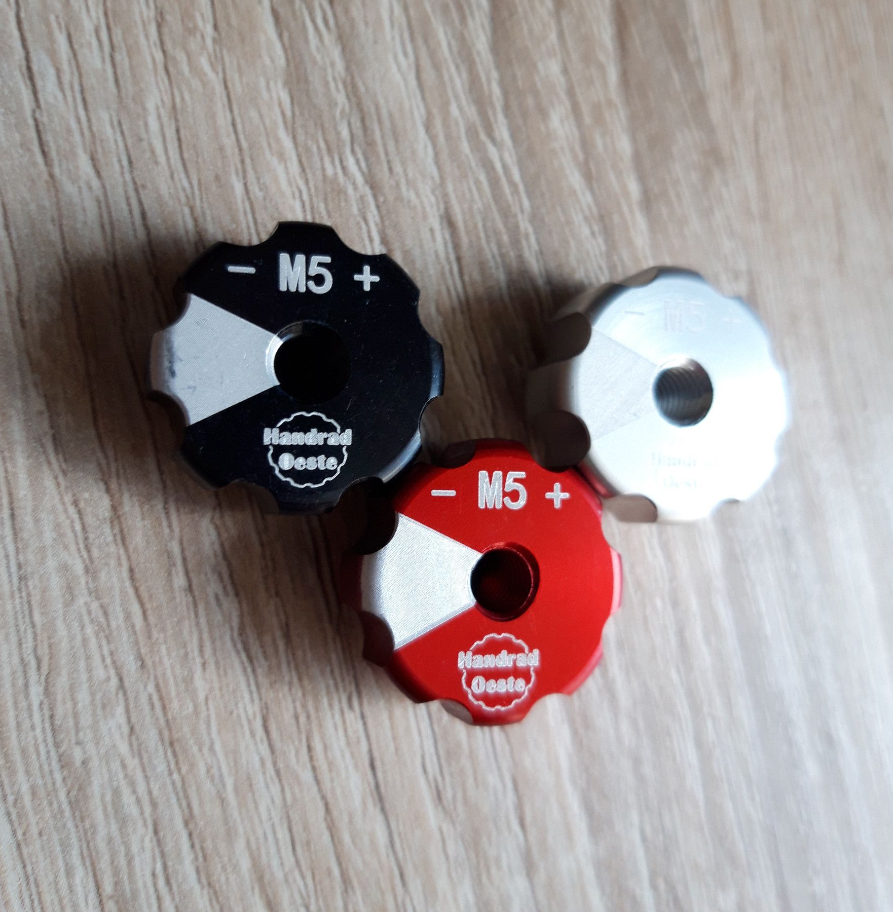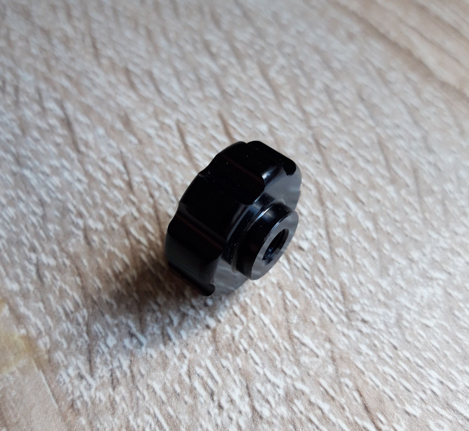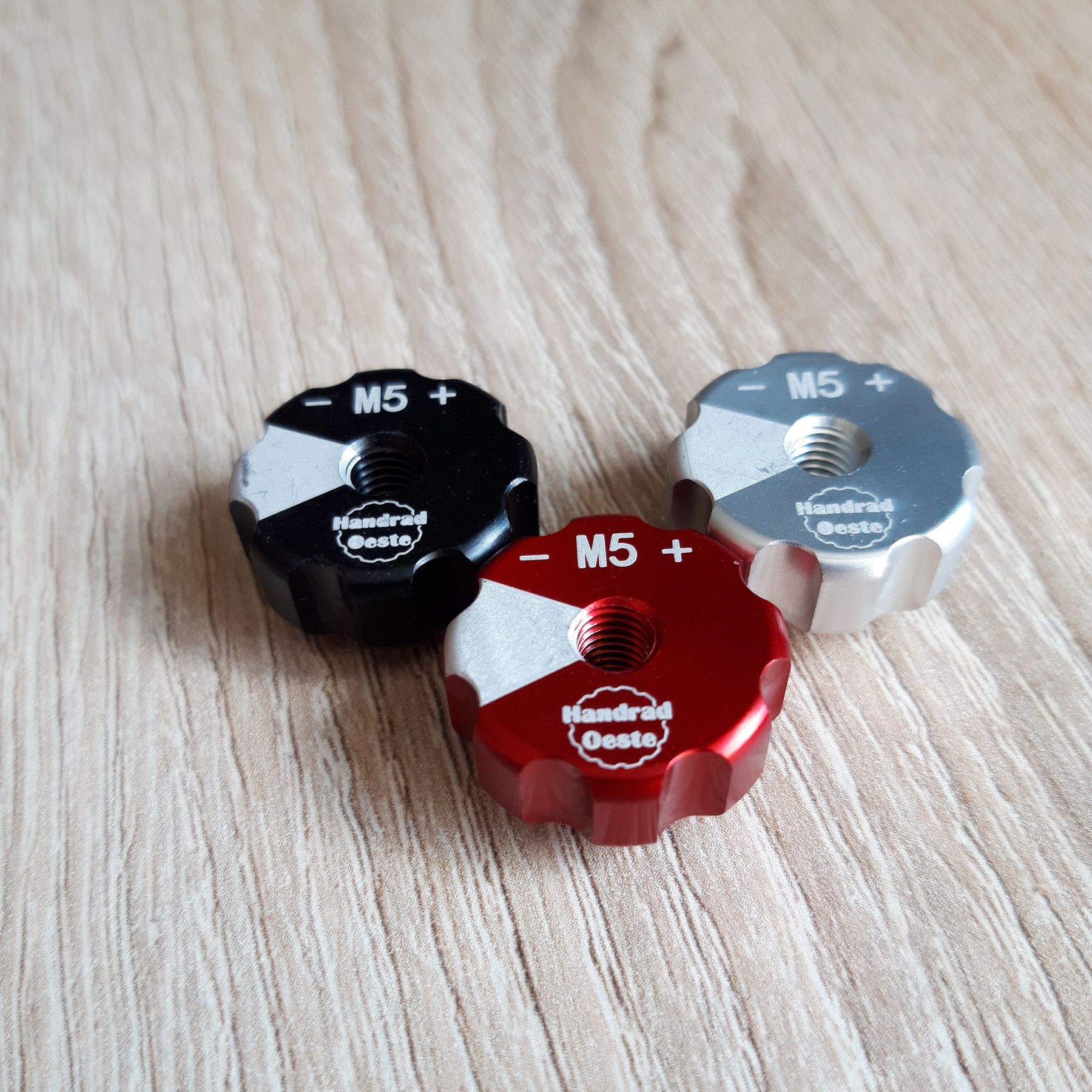 eloxiertes Aluminium Handrad M5 mit Innengewinde - Es handelt sich hierbei um die beste Alternative wenn es um werkzeugloses Verschrauben, wie bei Flügelschrauben, geht. Durch unser eigenes Design ist es jederzeit möglich die eingebaute Schraube (nach DIN) zu tauschen oder zu ersetzen, dadurch wird