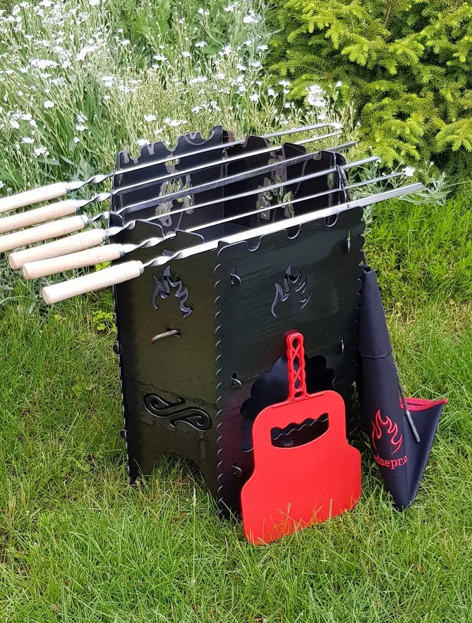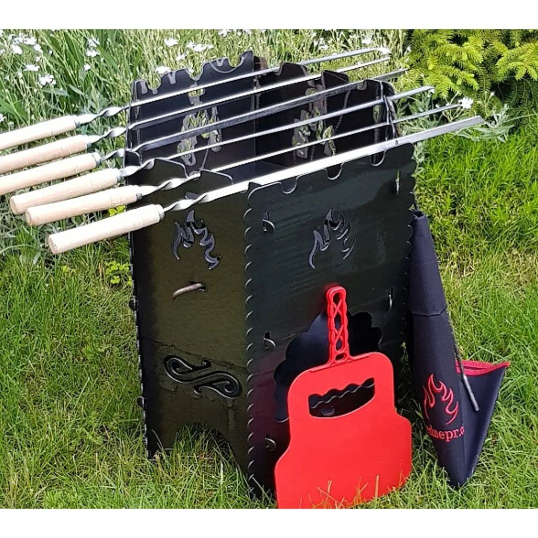 Grill-Ofen Set „Picknick“ aus 2 mm starkem Stahl, Campinggrill, Angeln, Schaschlik.