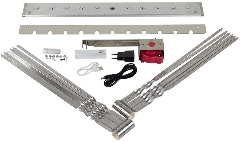 Grillaufsatz, Grillmaster mit Motor, Powerbank und 11 Spieße