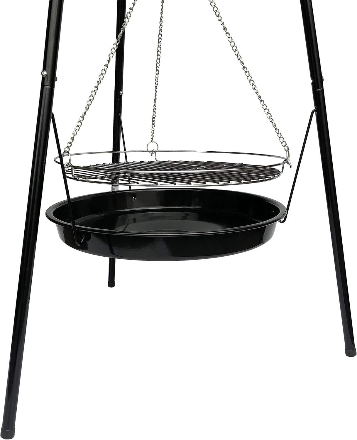 Der Schwenkgrill der Marke Grillchef aus dem Hause Landmann überzeugt mit seinem verchromten Grillrost (höhenverstellbar per Kettenzug) und seiner emaillierten Feuerschale. Der Grill ist schnell und mit wenigen Handgriffen aufgebaut. Die Feuerschale wird in die Dreibein-Konstruktion gehängt. Dadurch wird der Schwenkgrill zu einem absoluten Hingucker für Ihren Garten. - Traditioneller Dreibein Holzkohle-Grill - Grillfläche: ca. Ø 41cm - Verchromter Grillrost - Emaillierte Feuerschüssel -