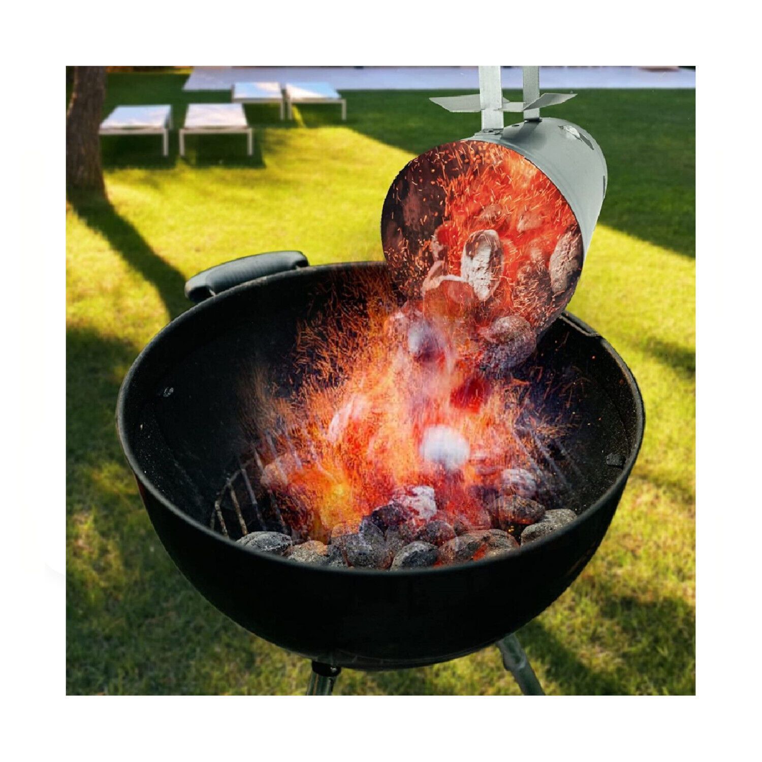 Blaupunkt Grillkohleanzünder für Kohle und Briketts Anzündkamin Holzgriff mit Hitzeschild