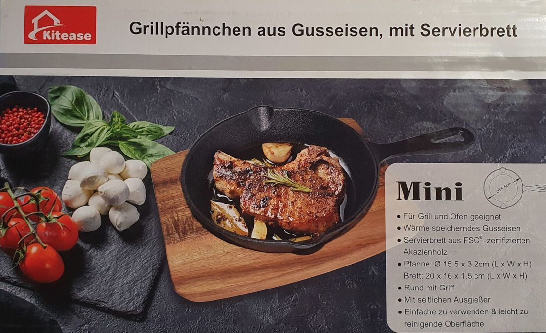 Grillpfännchen aus Gusseisen mit Servierbrett Ø 15,5 cm