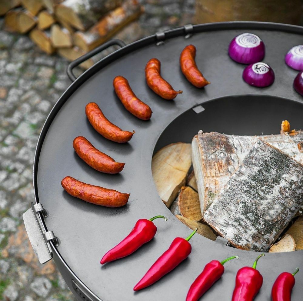 Grillplatte Feuerplatte mit Gitter und Griffen Ø 102 cm / 50 cm für Feuerschalen