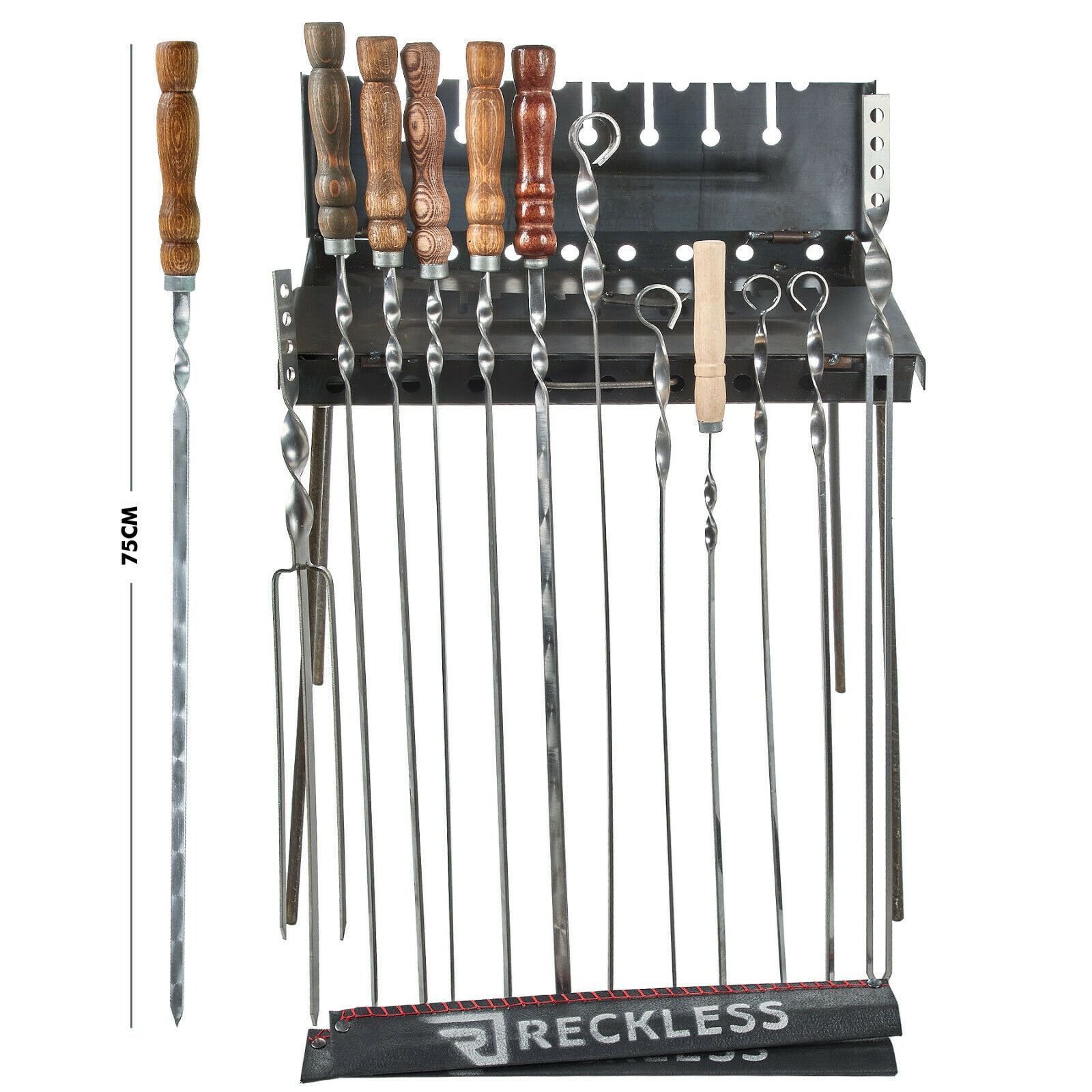 Grillspieße, Schaschlick Spießen aus robustem Edelstahl 3 mm stark mit Holzgriff 1.