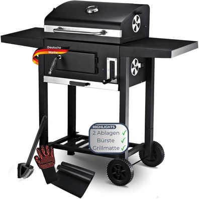 Holzkohlegrill Deckel OLLI [Grillmatte Bürste & Handschuhe] Grillwagen
