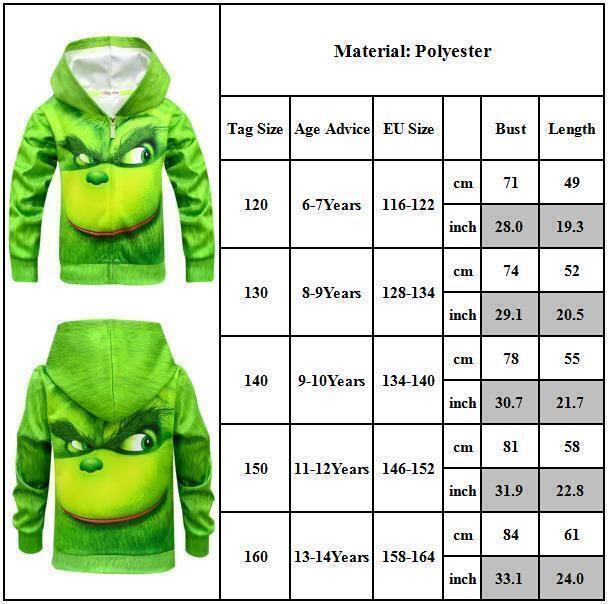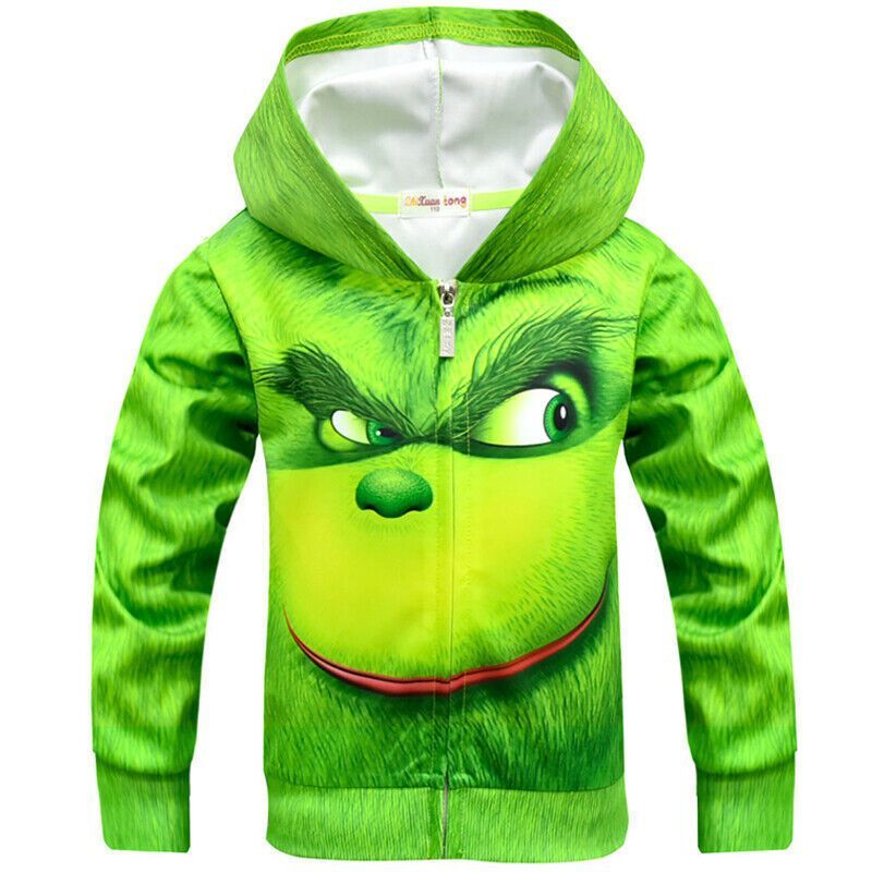 Grinchs Weihnachtspullover fur Jungen und Madchen mit Reibverschluss langarmelig