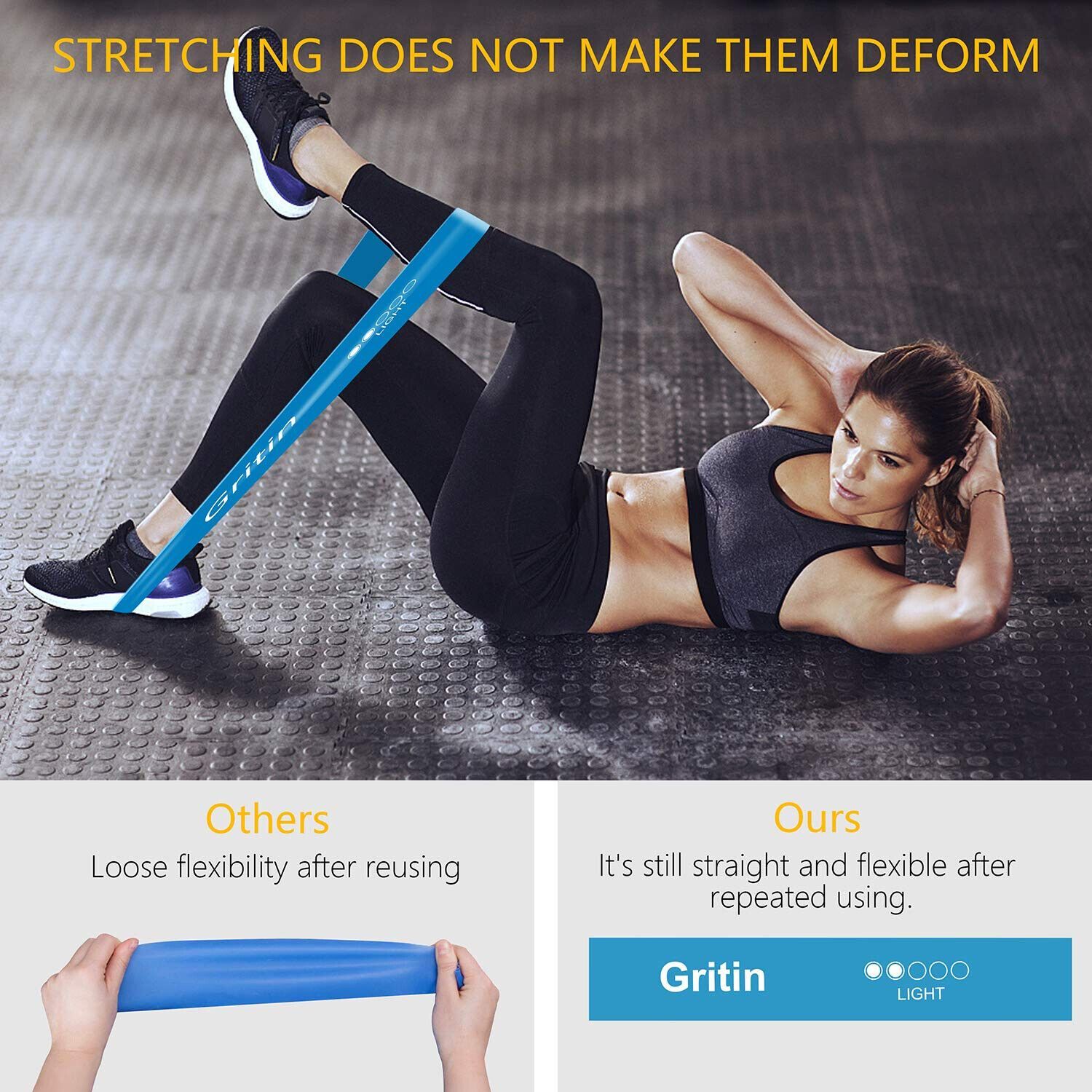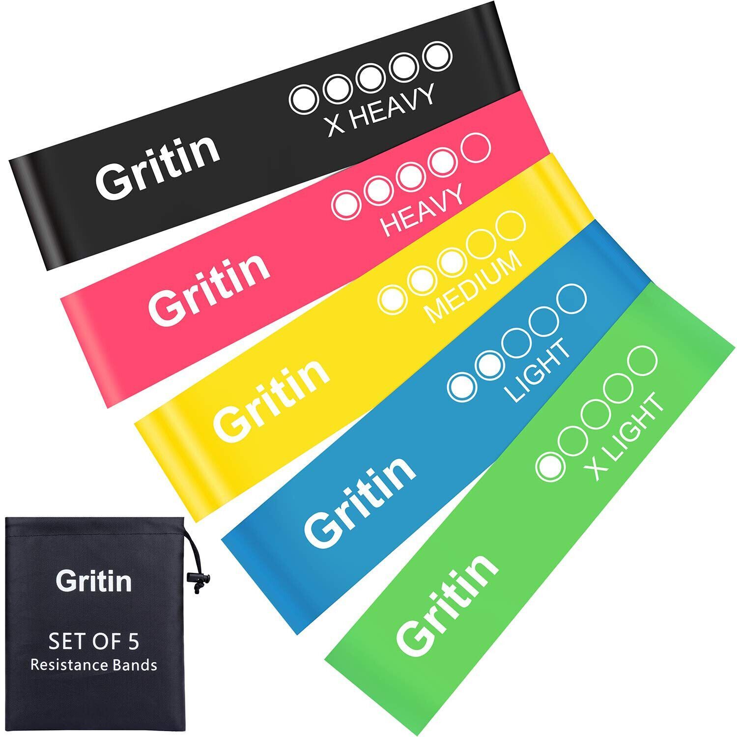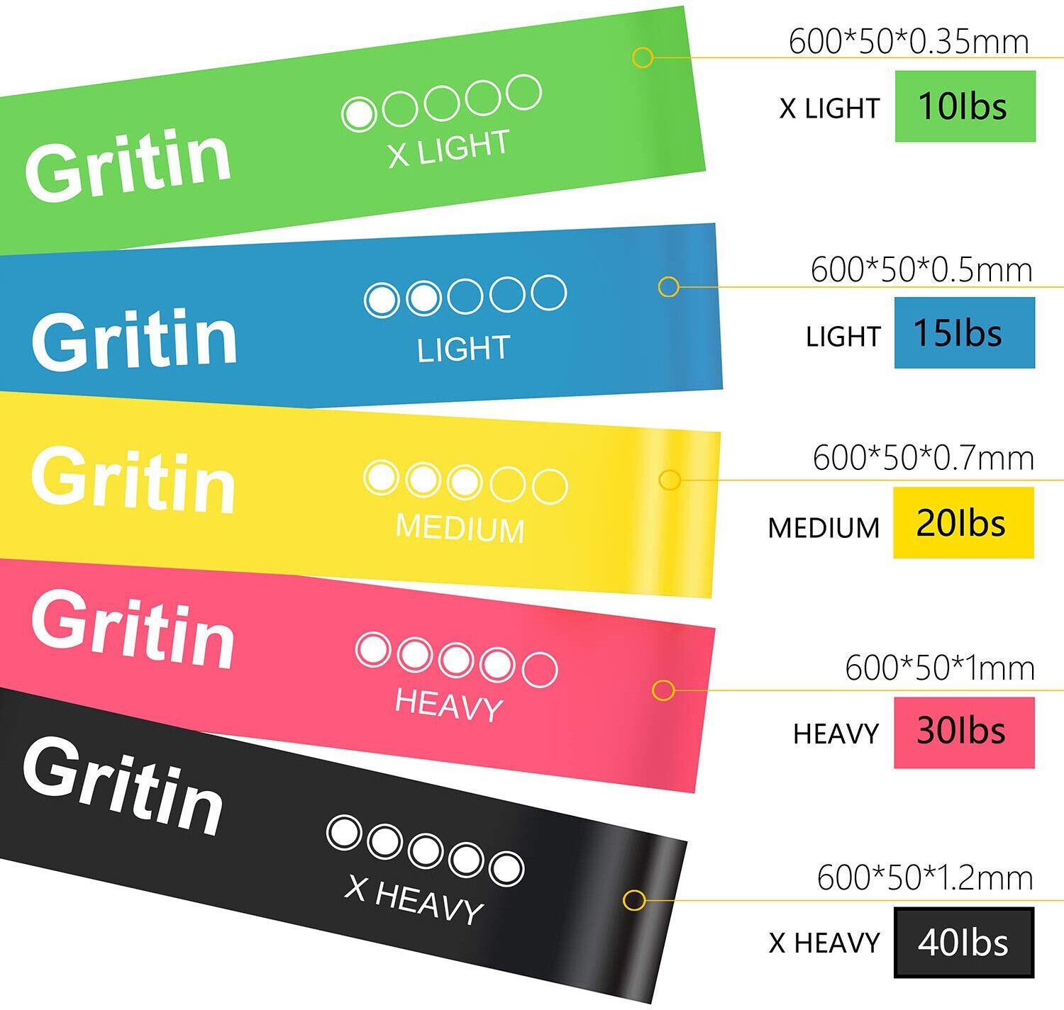 Gritin Fitnessbänder Gymnastikbänder Naturlatex Sport Yoga 5 Widerstände 5 Pack