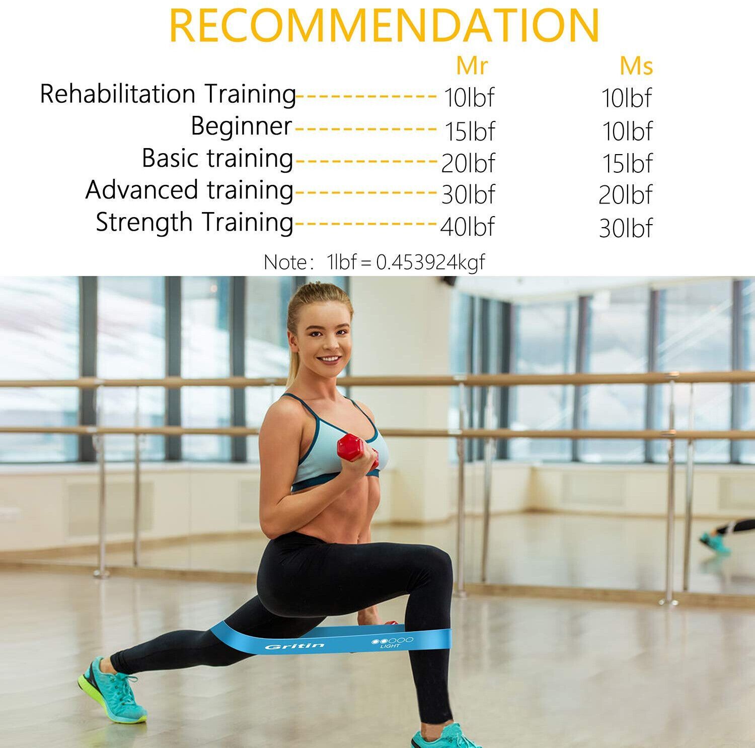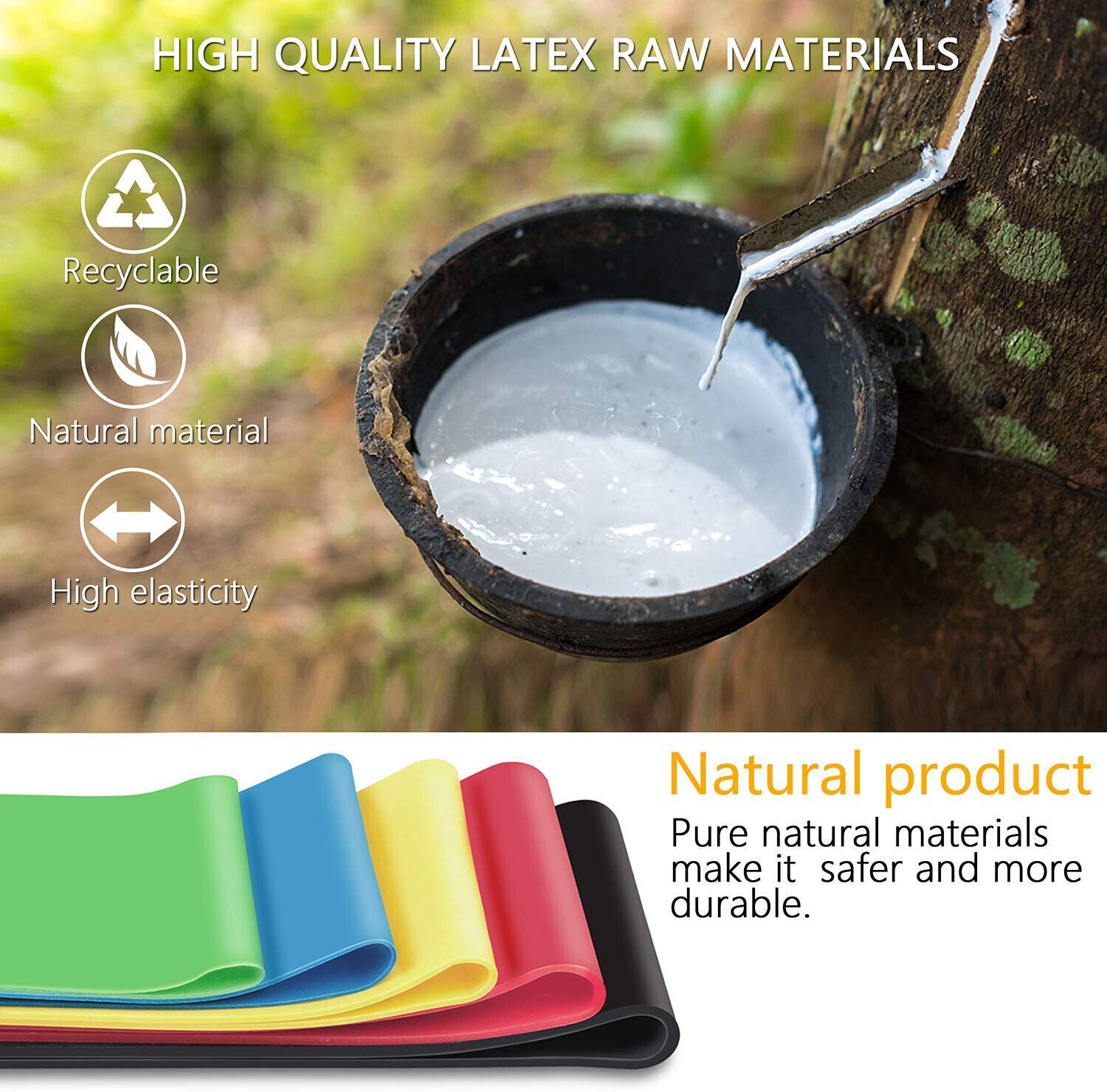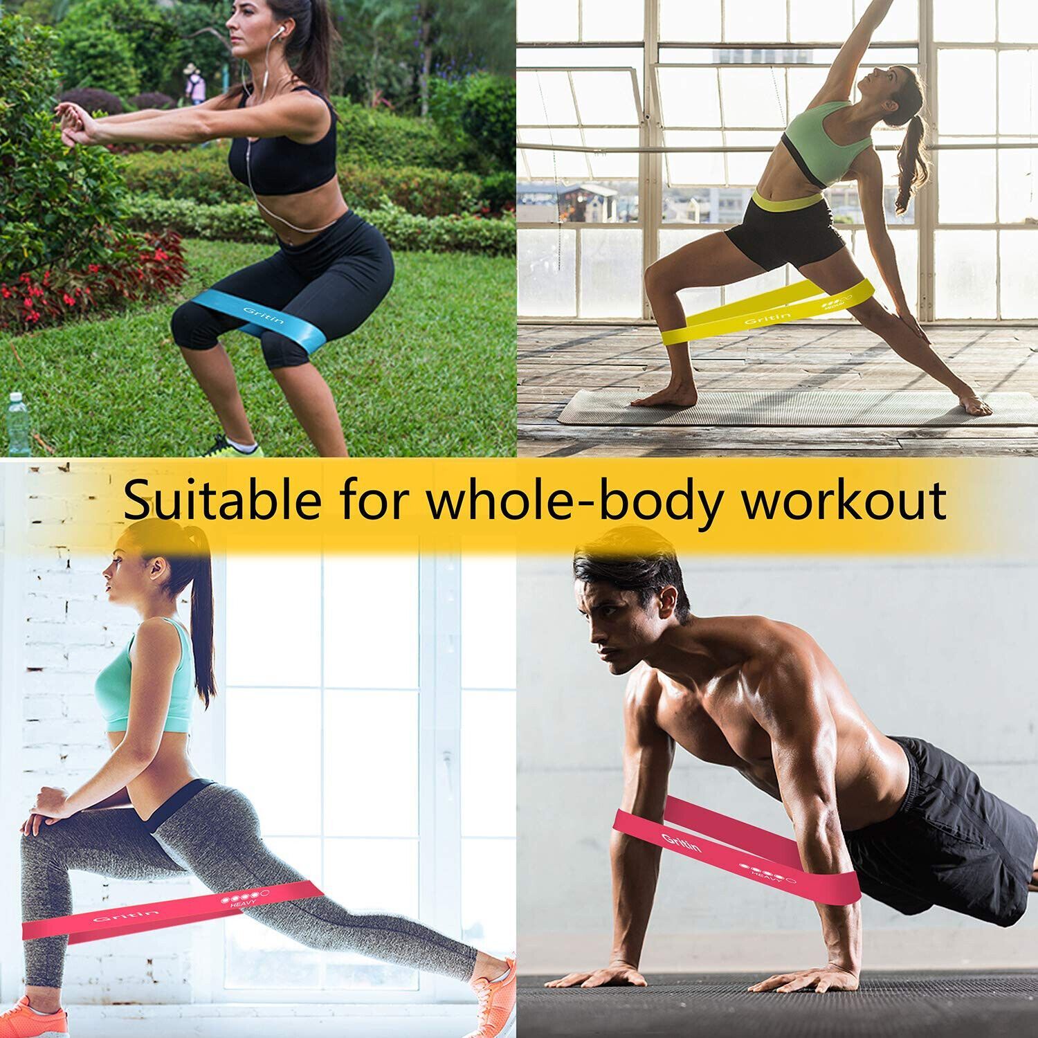 Gritin Fitnessbänder Gymnastikbänder Naturlatex Sport Yoga 5 Widerstände 5 Pack