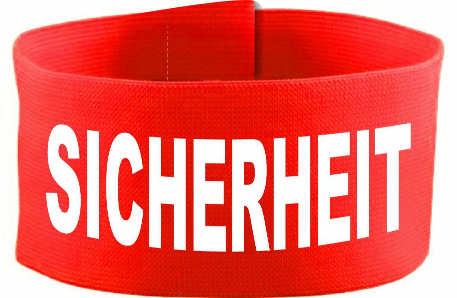 Größenverstellbare Klettarmbinde 5cm Höhe mit Aufdruck Sicherheit