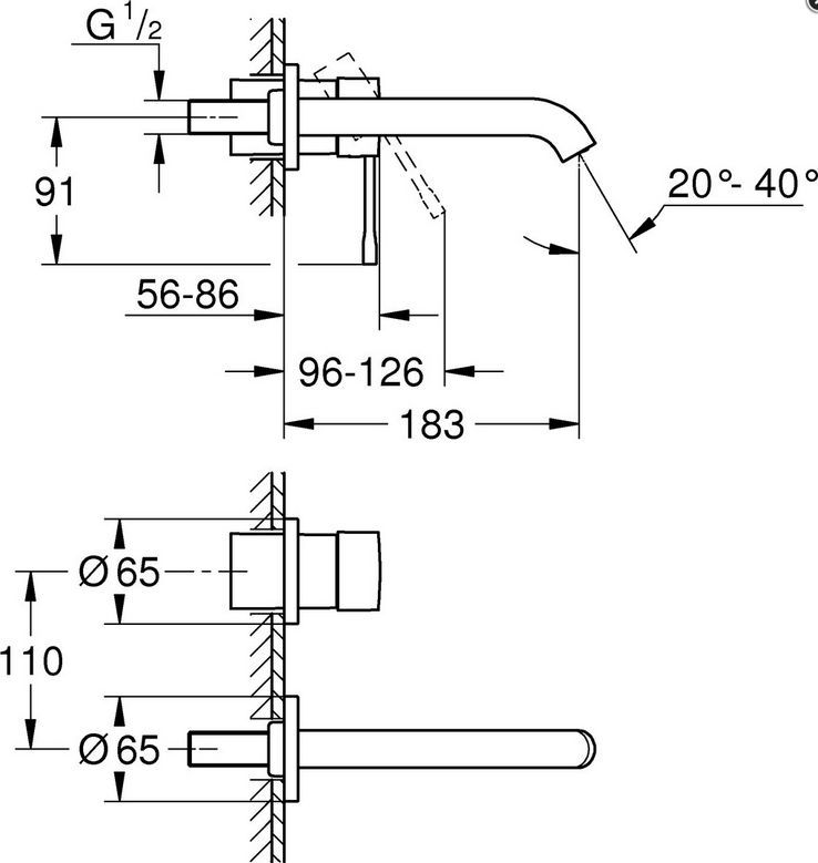 Grohe GROHE 2-L-WT-Wandbatt. Essence 29192 1 FMS Ausladung 183mm hard graphite