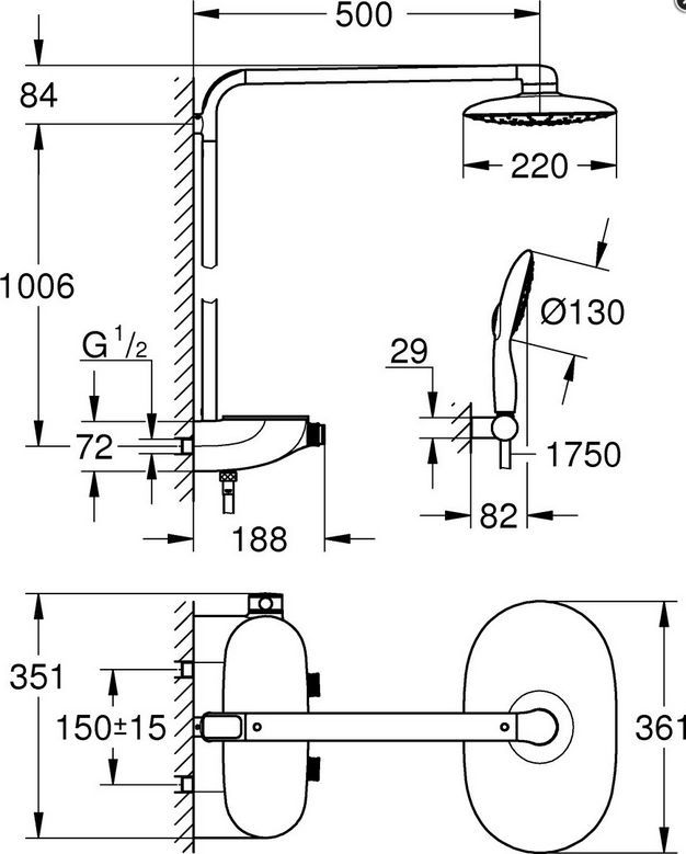 • Grohtherm 800 Duschsystem Thermostat Brausebatterie mit Brausegarnitur, 34566000