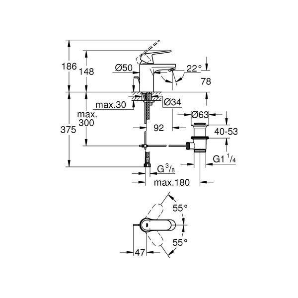 Grohe GROHE EH-Waschtischbatterie Eurosmart C 32825 DN15 Zugstangen-Ablaufgrt. chrom