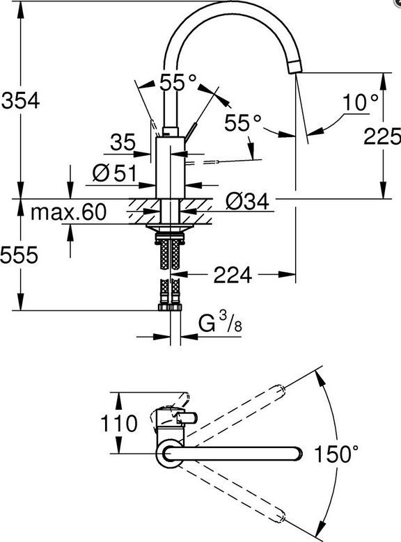 Grohe Grohe EHM Spültisch Eurosmart C Grohe Zero m hohem schwb. Rohra. chrom