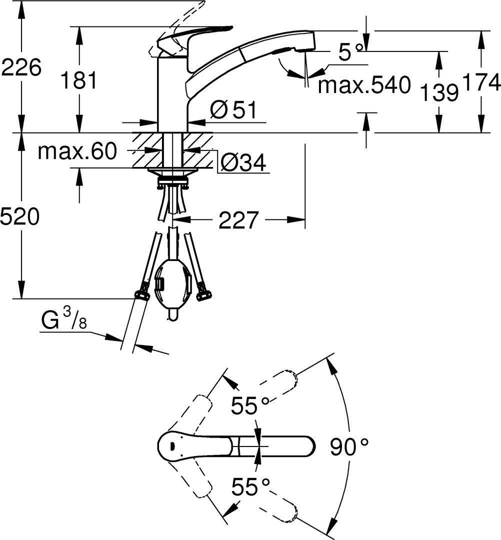 Grohe Grohe Einhandmischer Spültisch Eurosmart flacher AL herausziehb Dual Brause chrom