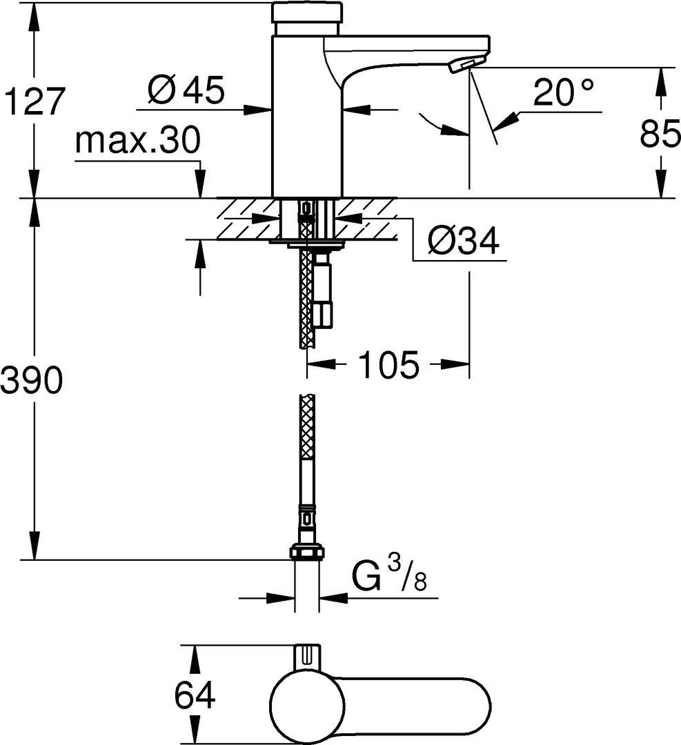 Grohe Grohe Selbstschlussar. WT Eurosmart CT, mit Mischung, verchromt