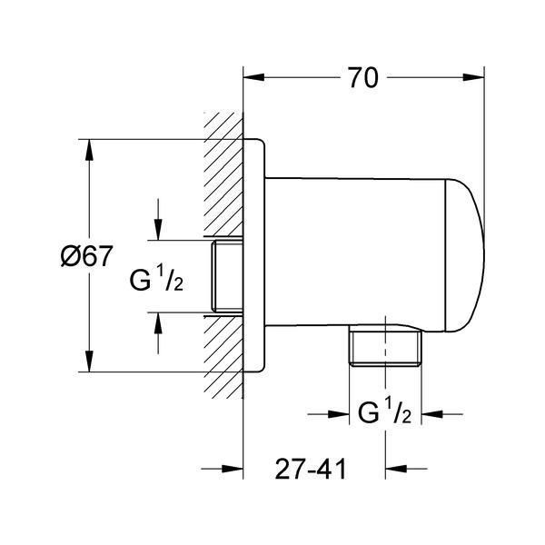 • Grohe Rainshower Schlauchanschluß - Wandanschlußbogen 1/2" DN15 mit RV 27057000