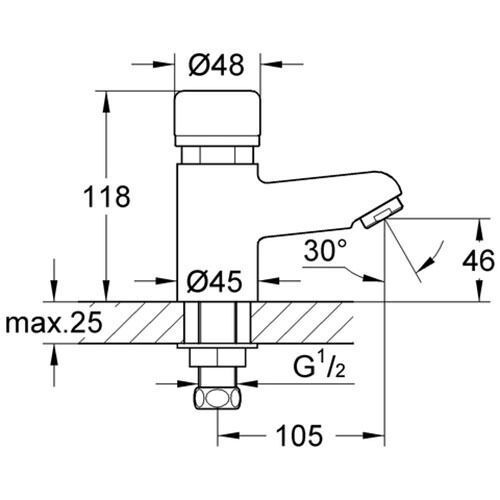 Grohe Grohe Waschtisch Standventil Selbstschluss-Batterie Controecon 36100000 chrom