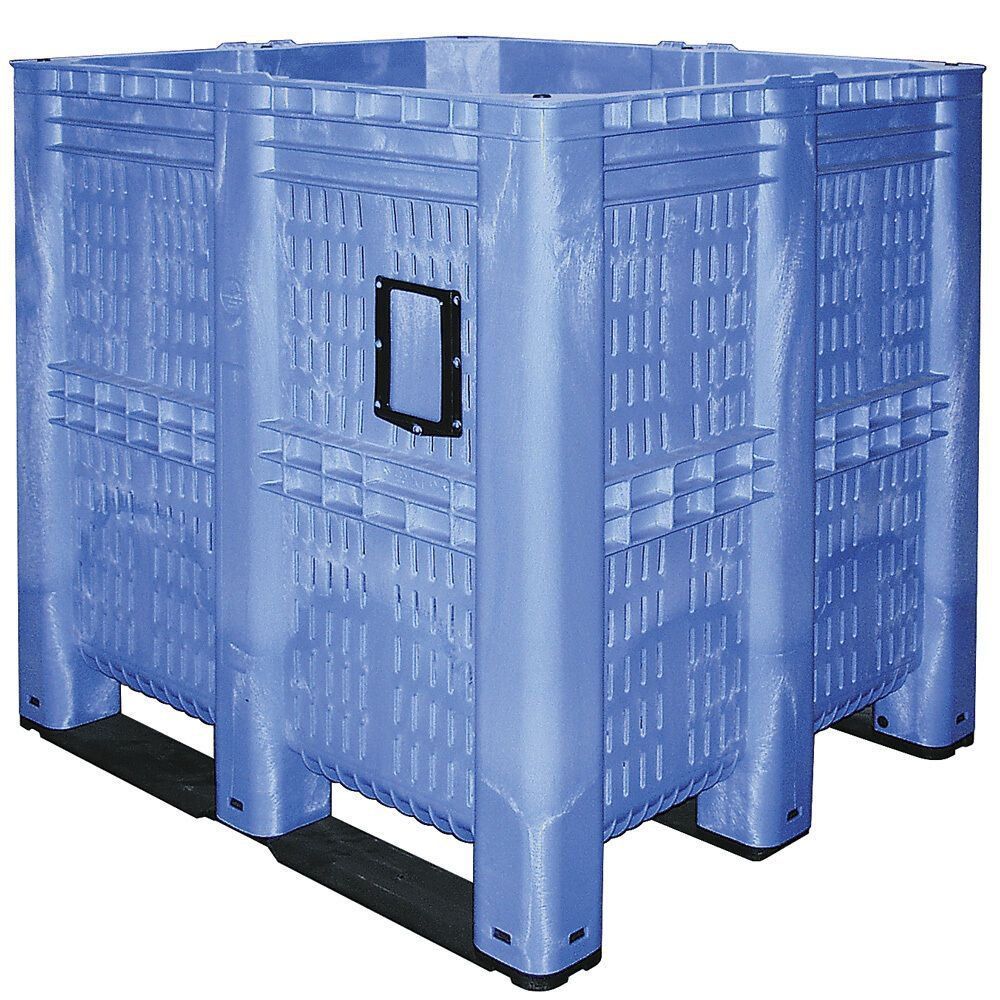 Großbox mit 3 Kufen, 1400 Liter, LxBxH 1300x1150x1250 mm, durchbrochen, blau