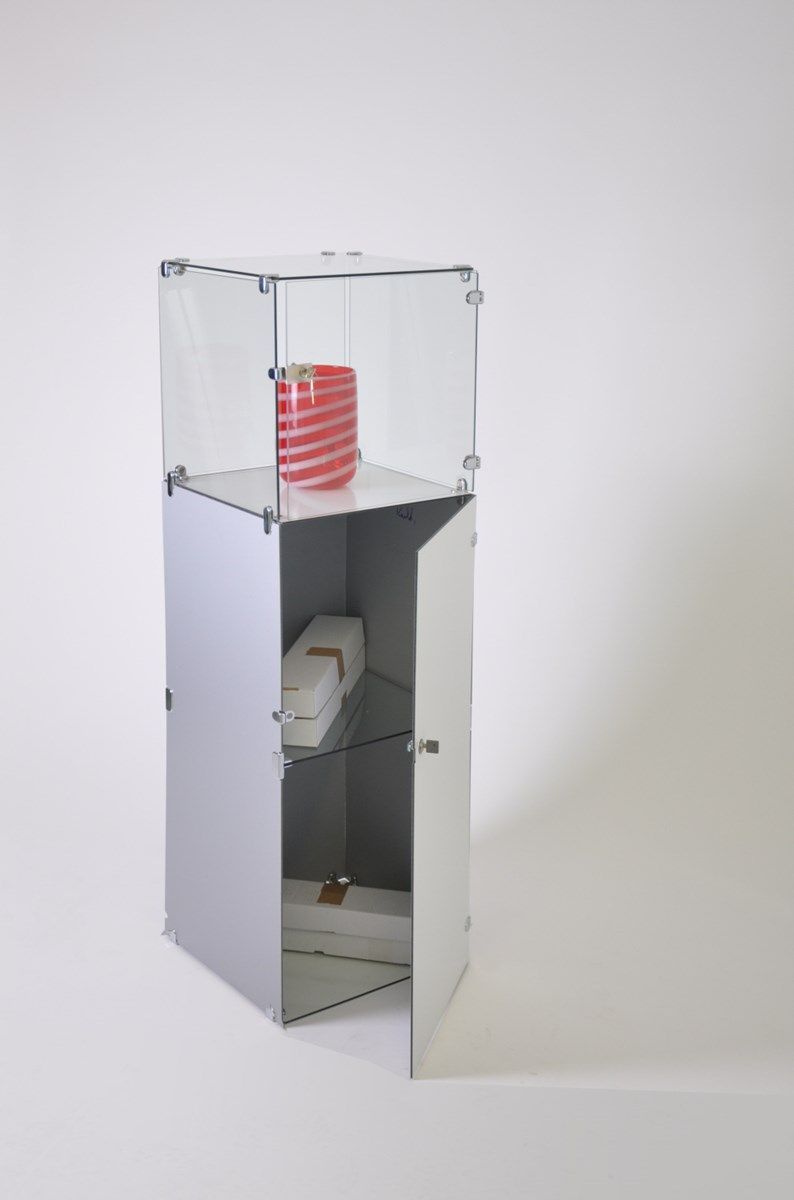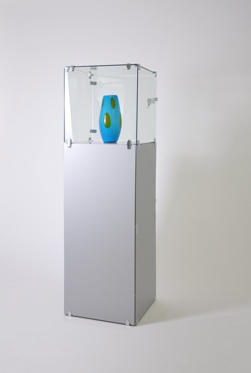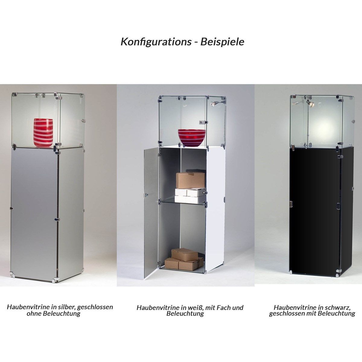 große abschließbare Juweliervitrine Haubenvitrine Vitrine Glas mit Fach grau