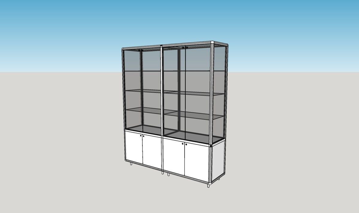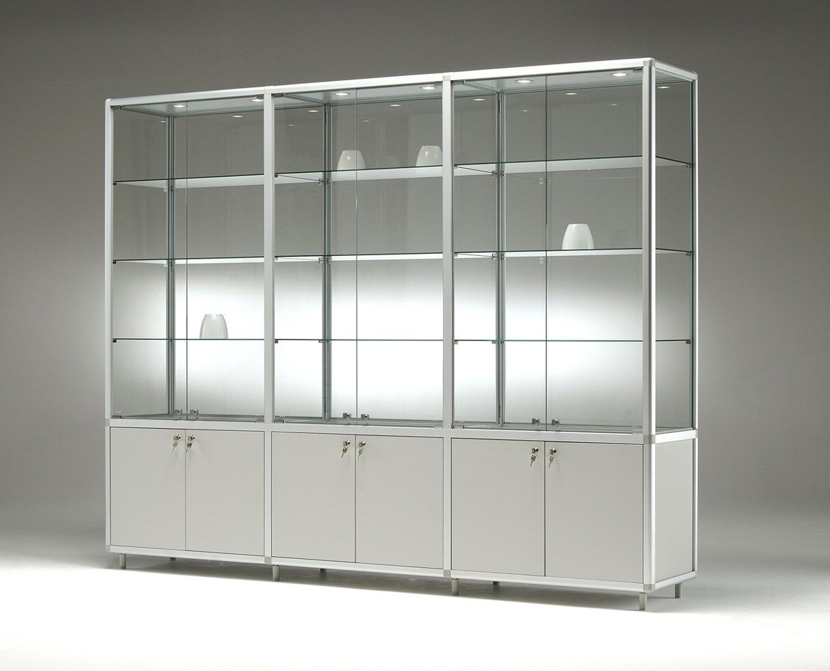 große breite Ausstellungsvitrine abschließbar mit Unterschrank 150 cm Spiegel