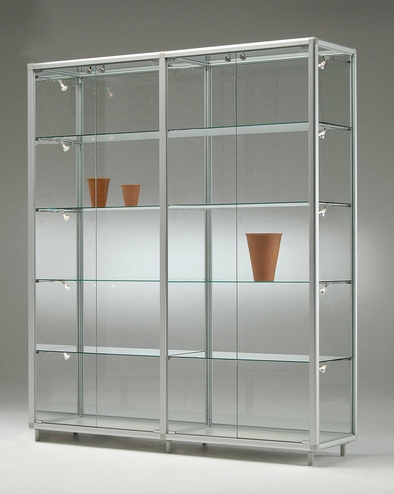 große breite Ausstellungsvitrine & Schloss & Beleuchtung 200 cm Spiegelrückwand
