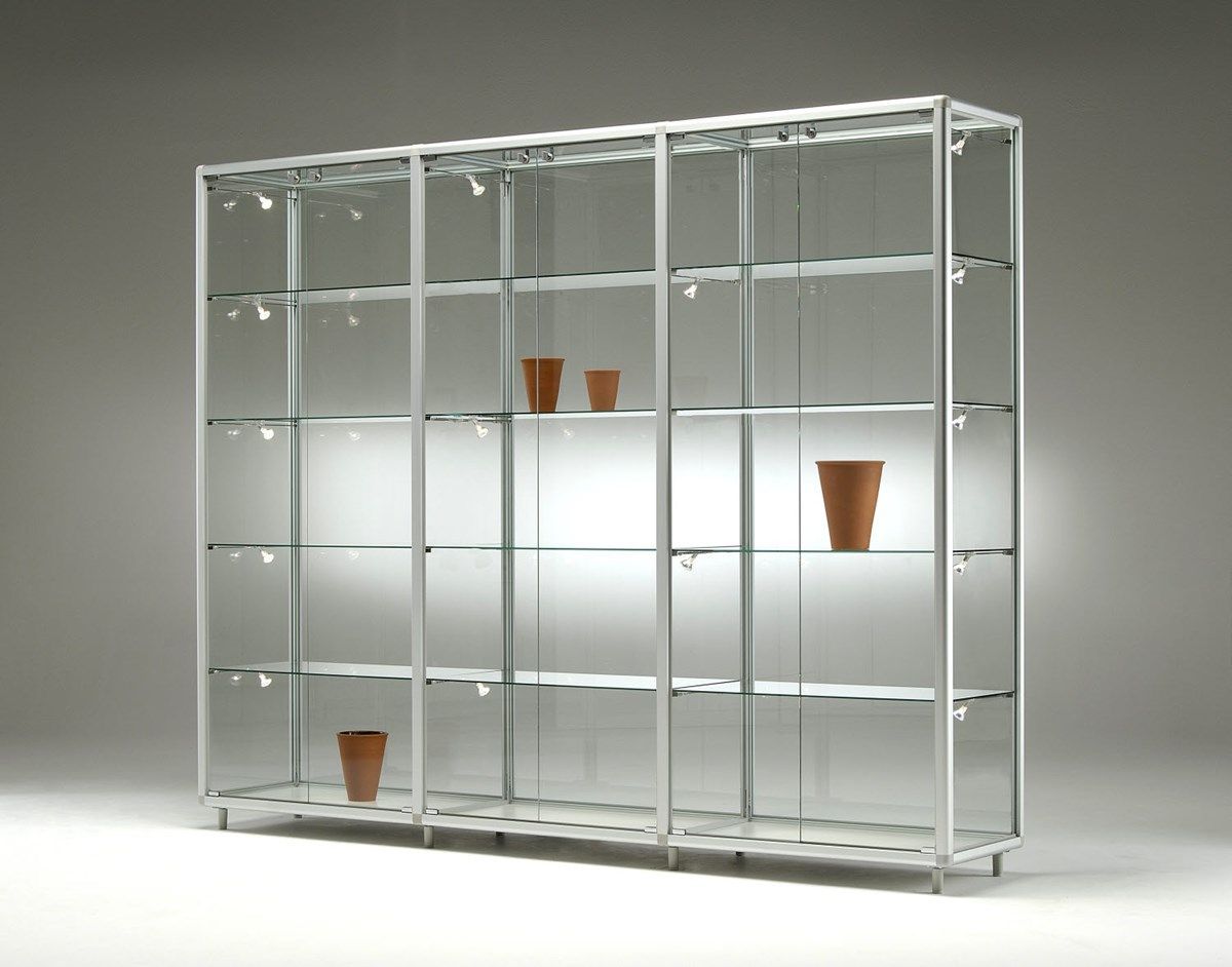 große breite Glas-Ausstellungsvitrine abschließbar 230 cm Glasrückwand