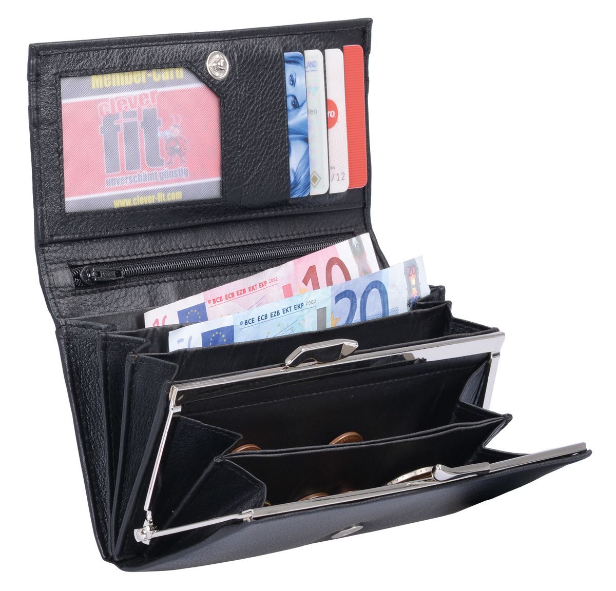 Wortmann große Damenbörse mit Knipser Bügelbörse, Leder, schwarz RFID-Schutz