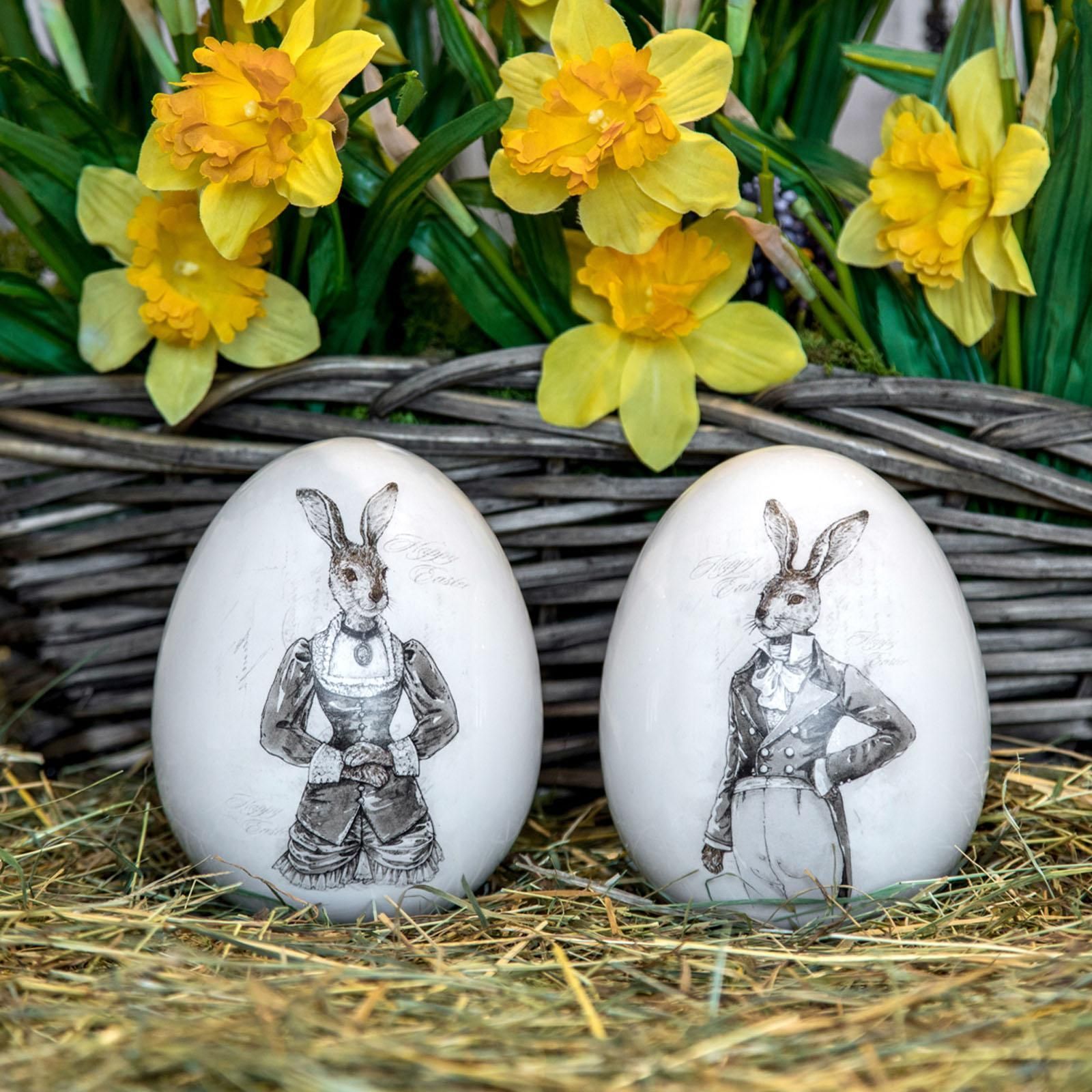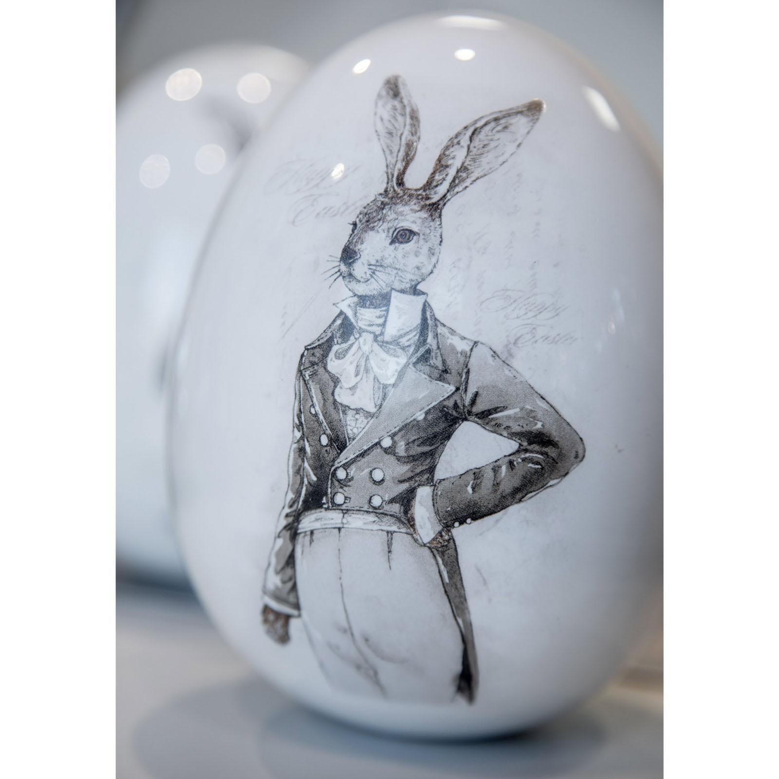 große Deko Tisch Ostereier Motiv Hasen, Porzellan Oster-Deko Eier Set 15.5 cm