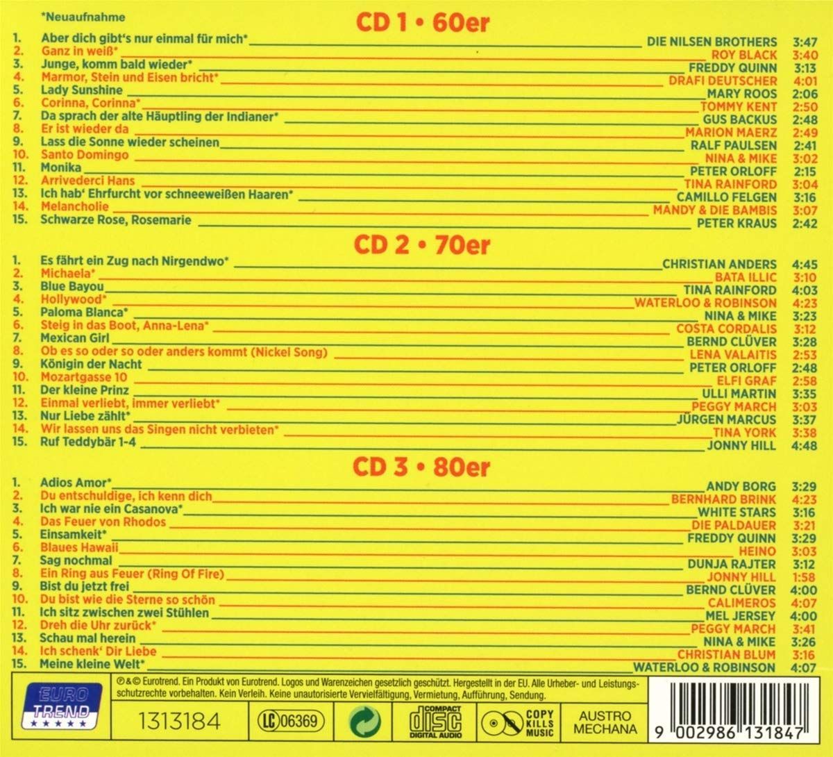 Große Evergreens der 60er, 70er, 80er, 3er Musik CD