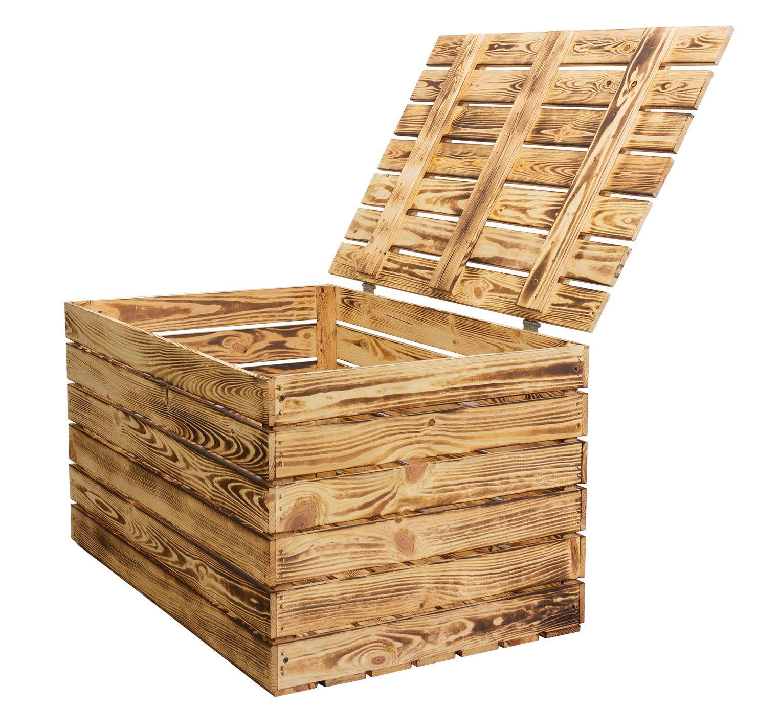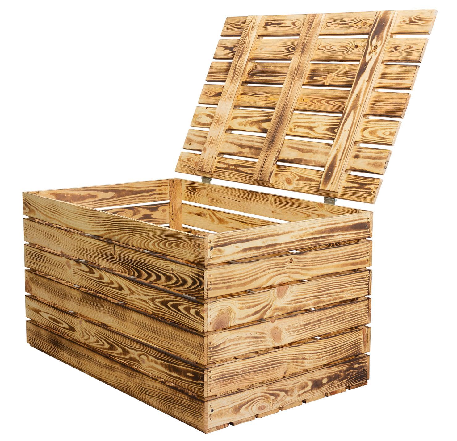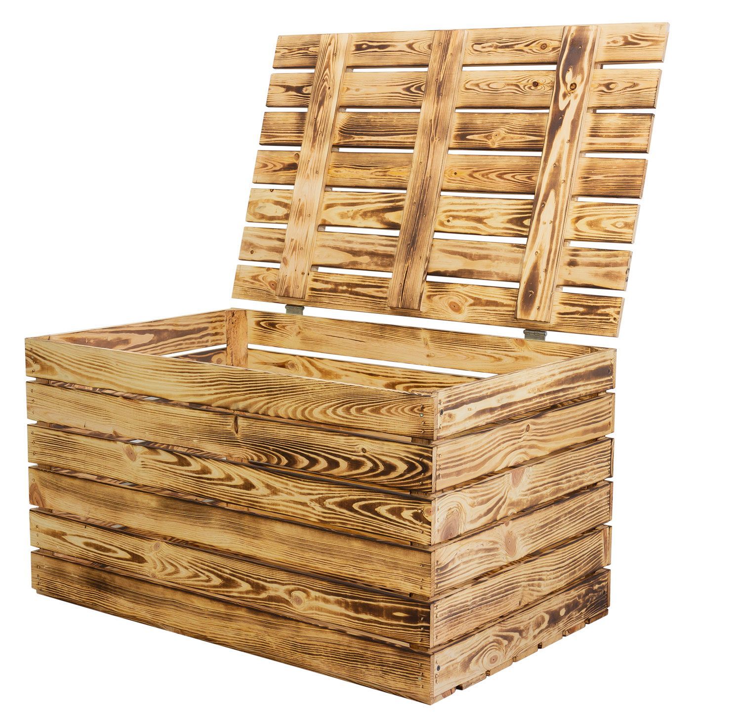 Grosse Holztruhe 80er geflammt mit Deckel 80x50x39cm