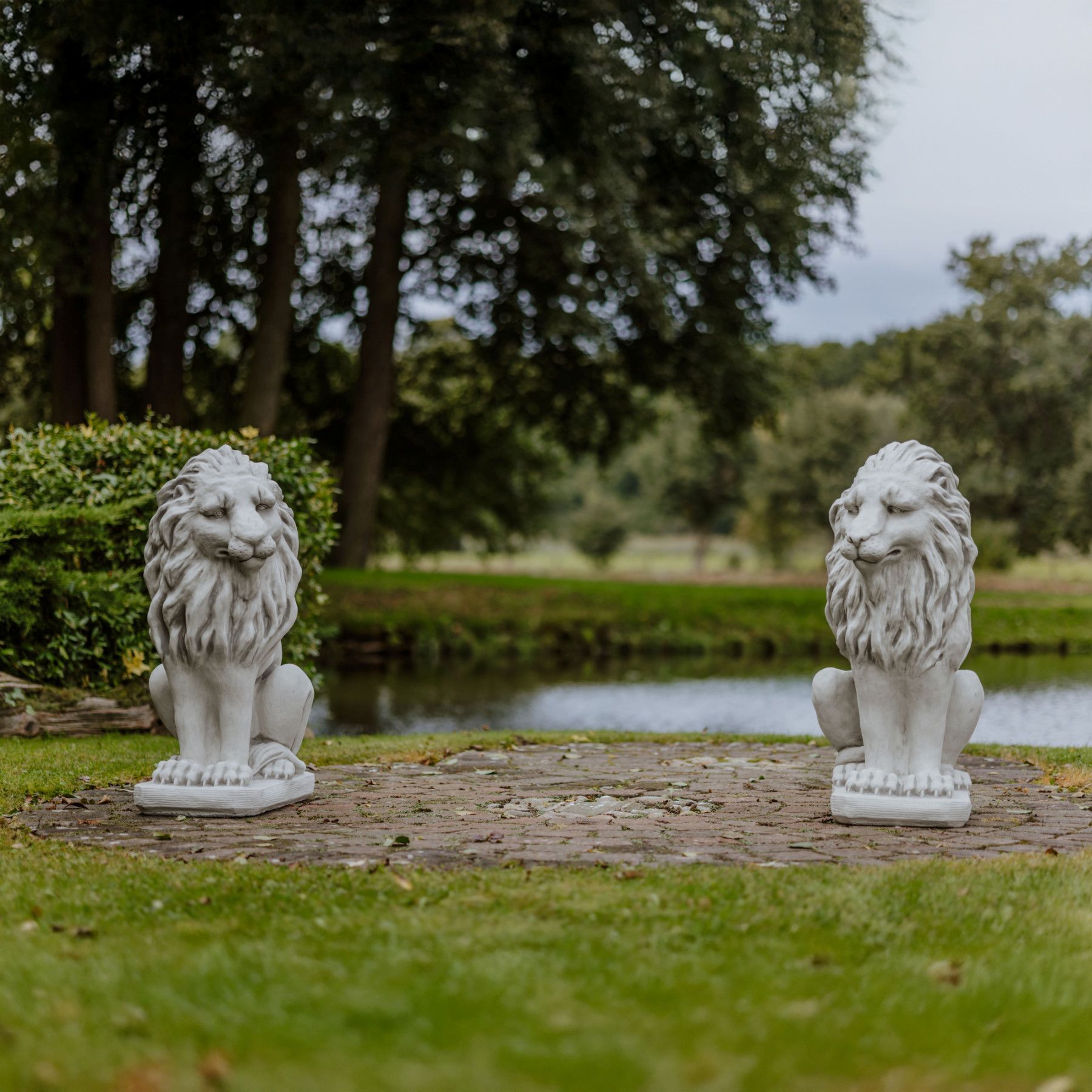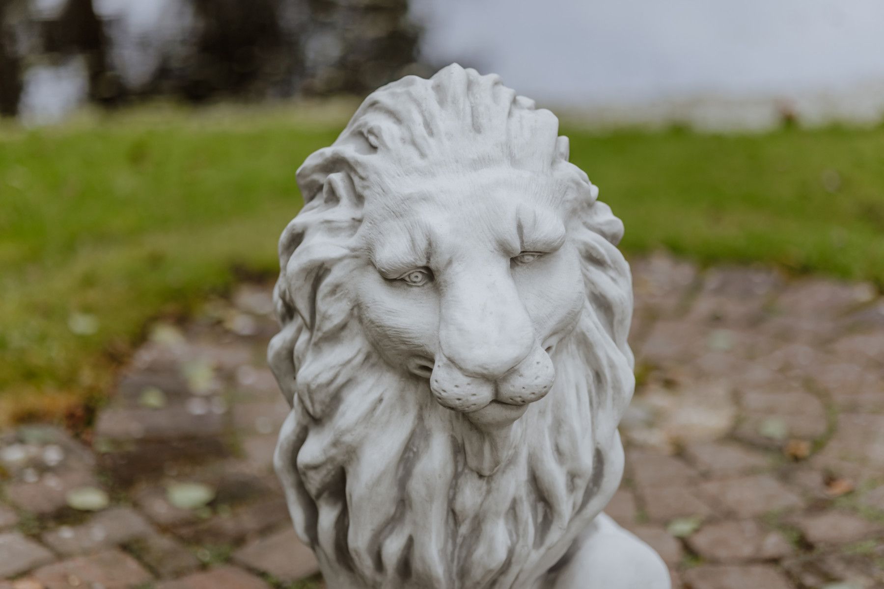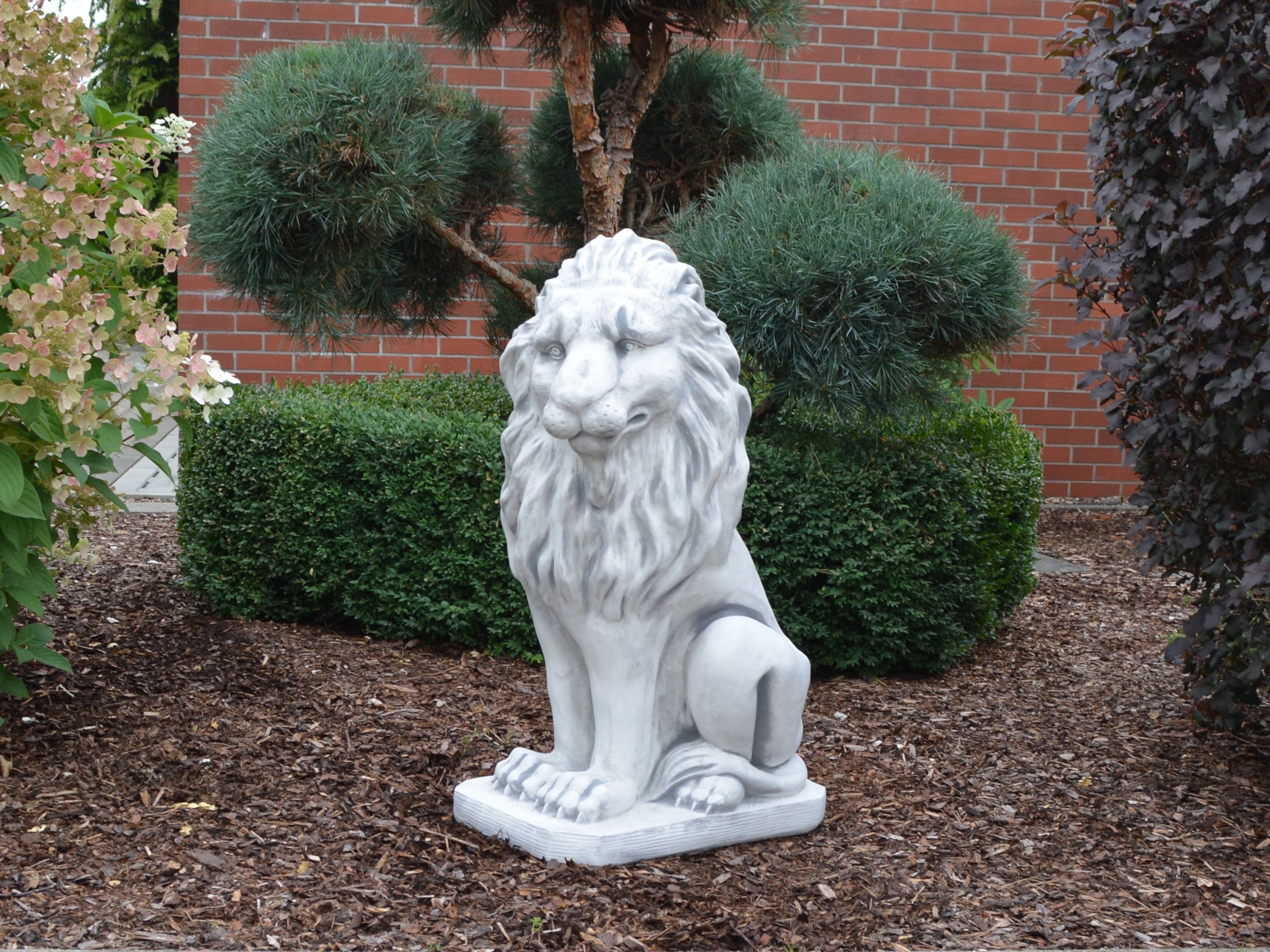 Große Löwen Statuen Leo, Steinfiguren, H. 92 cm, 198 kg, Grau, frostsicher